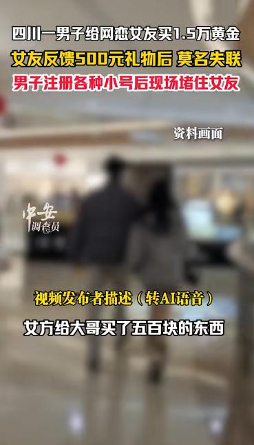 四川成都,男子网恋第一次见面,给女友买了1.5万黄金,女友回馈500元的衣服后失联,男子注册各种小号后,终于将其逮住!当众将女友紧紧抱住,朝围观人群大喊:我花15000元给她买黄金,结果微信、电话全是假的。 成都商场里突然一阵骚动,郑大哥(化名)死死抱住一个女子,声音里满是愤怒和委屈的说,他花一万五给买黄金,可转头就把微信电话全拉黑。 周围的人纷纷围过来,有人拿出手机拍照,有人上前劝架,被抱住的女子满脸惊慌,不停挣扎,嘴里还辩解着什么,场面一下子乱了起来。 没人知道,这场冲突的起点,是郑大哥满心期待的网恋奔现。 几天前的下午,郑大哥特意穿了件新衬衫,手里攥着准备好的礼物,等着网恋对象赵女士(化名)两人网上聊了很长时间,这次见面,他本来想当面确认关系,还琢磨着送份像样的见面礼。 见面后,赵女士谈吐得体,郑大哥越看越满意,路过一家珠宝店时,他主动拉着赵女士进去,挑了一条价值一万五千元的黄金项链,当场付款给她戴上。 之后又请赵女士吃了顿大餐,席间两人有说有笑,气氛特别好,赵女士也挺客气,临走时给了郑大哥一件价值五百元的衣服,说是回礼,郑大哥拿着衣服,心里暖洋洋的,觉得这段感情稳了。 可没料到,饭后没多久,赵女士突然说有急事要先走。郑大哥没多想,还叮嘱她路上小心,等赵女士走后,他想发微信问问对方到家没,却发现消息发不出去,自己被拉黑了。 他赶紧打电话,电话要么没人接,要么提示已更换号码,郑大哥心里咯噔一下,刚开始还觉得是误会,可能对方手机出问题了,可等了一天,还是联系不上,他才慌了神,一万五可不是小数目。 郑大哥翻遍了和赵女士的聊天记录、支付凭证,又找共同认识的人打听,可赵女士当初留的信息都很模糊,根本找不到线索。 不甘心的他注册了好几个小号,每天在朋友圈、交友群、购物平台上刷,就想找到一点和赵女士相关的痕迹,功夫不负有心人,几天后,他在一条短视频里看到了一个熟悉的身影,视频里的女子穿着那件五百元的衣服,和赵女士长得一模一样,正在一家商场里和人说话。 郑大哥赶紧记下视频里标注的商场地址,第二天一早就赶了过去,在商场一个人多的角落,他果然看到了赵女士,正和一个男子站在橱窗前看东西。 积攒了几天的委屈和愤怒一下子涌了上来,郑大哥冲过去拦住赵女士,要求对方给个说法,赵女士想躲开,郑大哥急了,就伸手抱住了她,才有了开头那一幕。 很快,商场保安赶了过来,把两人分开,旁边有市民帮忙报了警,民警到了之后,郑大哥拿出了聊天记录和购买黄金的凭证,赵女士则一直低着头不怎么说话。 这件事被传到网上后,网友们吵翻了,有人替郑大哥抱不平,明显是被骗了,网恋的时候可不能这么大方,也有人说郑大哥做法太冲动,就算被骗,也该走法律途径,在公共场合这样闹,很容易出问题。 但这件事确实给大家提了个醒,别轻易投入太多金钱,真遇到事了,也别像郑大哥这样冲动,保存好证据,找警察或者通过法律渠道解决,才是最靠谱的办法。 毕竟,真心换不来真心的时候,至少得保住自己的财产安全。 对此,你还有什么看法呢? (信息来源 :中安在线 )