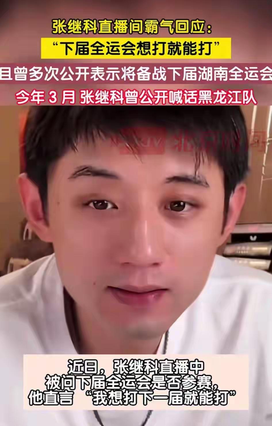 乒坛要变天了。 张继科已经喊话了。 他在直播回喊话黑龙江队,问他们要不要人,因为他要准备参加下一届的全运会了。 谁能想到,37岁的张继科直播里直接喊话黑龙江队“要人”,目标直指2029年全运会——到时候都41岁了,这哪是退役选手,分明是不服老的“乒坛逆行者”! 别觉得年龄是硬伤,龙队早就说过“心存热爱就永远是当打之年”,62岁的倪夏莲还在备战洛杉矶奥运会,张继科这41岁的年纪,分明正是经验与体能的黄金平衡点。 比起纠结他能不能掀翻现主力,我更觉得这波回归太有意义了——体育圈不该只有“青春饭”,这种跨越年龄的热爱,才是最打动人的体育精神! 张继科真能站上2029年全运会赛场吗?你觉得他能再创惊喜吗?来评论区聊聊你的看法~