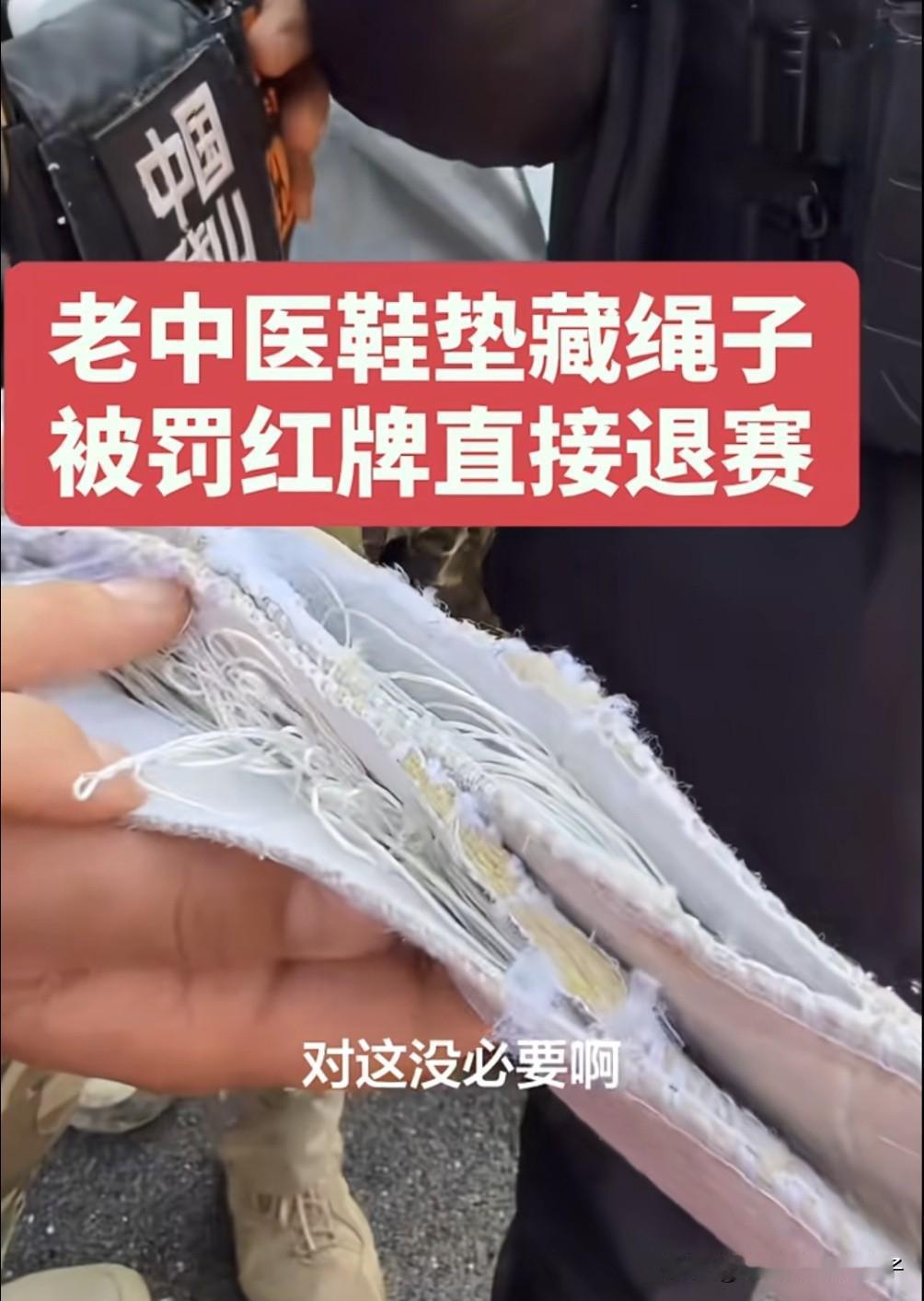 有点丢人了! 万万没想到,荒野求生决赛第一天就有人淘汰了,还是经验丰富的老中医,而原因居然是他在鞋垫里藏了绳子。 看老中医情绪还稳定的,就那样安静的坐在原地,也没有为自己辩解,接受了被红牌罚出场的结局,那大概率就是他自己放的了。 有点想不明白他为啥这样做,都已经坚持到决赛了,就算拿不到冠军,只要多坚持几天退出也有个好名声,后续可以直播或者再参加其它求生节目。 现在整了这么一出,因小失大,不仅损失了奖金,而且名声都坏了,其它节目组也不会邀请他,全网都知道他在比赛中作弊,评论区全是让他解释的。 一根细线也不了多大作用,大家觉得老中医为什么这样做呢?