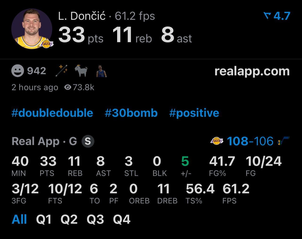 东契奇是NBA历史上单赛季最快达成400分+100次助攻的球员。