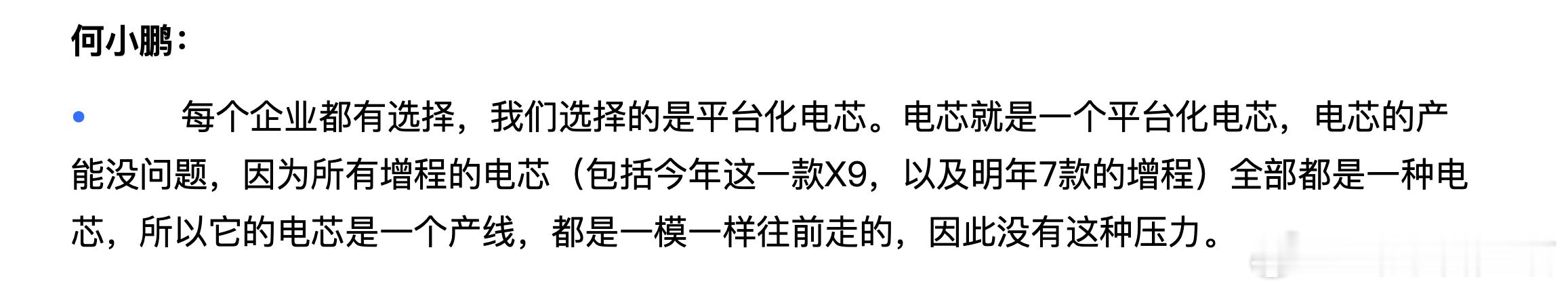 小鹏这个电池策略很牛啊,所有增程都是一种电芯,这也是零跑的策略,把电池采购标品化。极端一点可以理解成,谁不服,就换你。