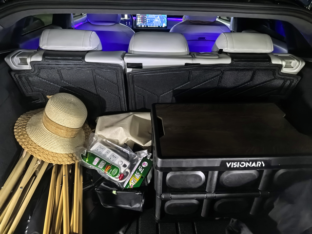 储物空间很大却还是不够用 虽然后备箱空间比较大,但是车里面的零碎的小物件比较多,而且喜欢在车里面放各种小零食什么的,不能把所有的东西都往后备箱塞,我还是喜欢把东西放到前排,这样才能触手可得,其实P7+的手机无线充电的下方那个储物盒还可以再做大一点,现在这个还是偏小的,前排再加个前备箱就更好了。