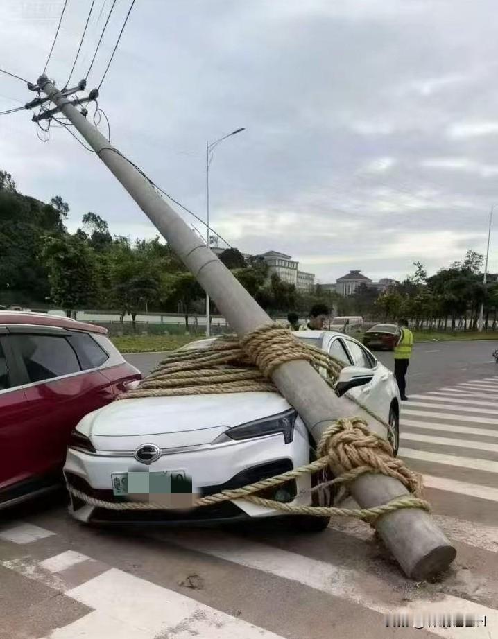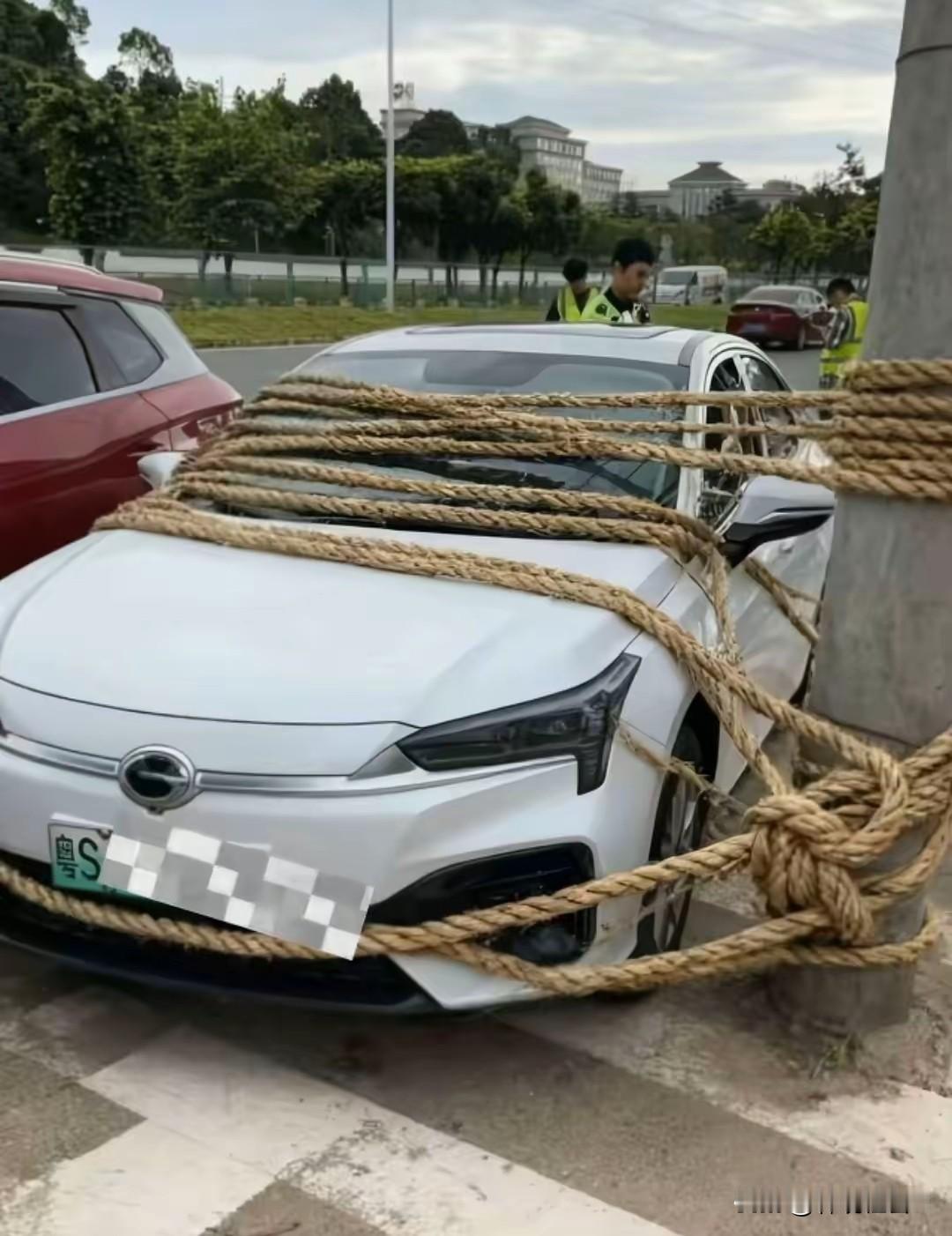 超有想象力! 再也不怕台风了,不相信台风能把电线杆子连根拔起!可是,网友们担心:假如这个电线杆没有被大风吹跑,而是向着捆绑汽车的方向倒下去,岂不就成了“自我挖坑”的悲剧! 还有,飞机这样捆绑也不合理,至少应该把翅膀也一块拴起,这样也许能阻止大风把它们刮到天上去!唉!现在突然明白了,为什么会发生江苏科技大学首席科学家郭某这样的骗局?