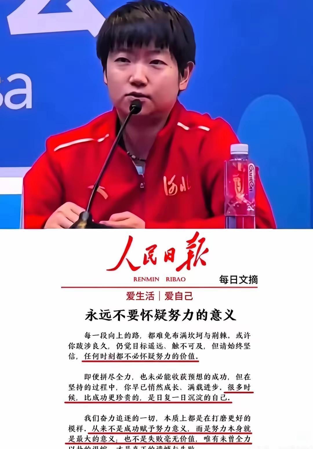 谁懂啊!孙颖莎谈洛杉矶奥运会的发言真的戳中人心,这份清醒通透远比金牌更动人。 见过巅峰荣耀也扛过失利低谷,哭过笑过仍能放平心态,不把奥运金牌当唯一执念,这份松弛感才是顶级运动员的内核底气。常年稳坐世界第一,从没想过名次是负担,反而懂得卸下执念轻装上阵,这份格局早已超越胜负本身。 两世乒赛单打冠军、两世界杯单打冠军,还有奥运混双金牌加身,她的优秀从来不是靠一块奖牌定义的,每一次全力以赴的拼搏,每一次从容面对输赢的态度,都早已证明自己无可替代。 真正的强者从不会被结果绑架,而是在热爱里坚定前行,这样的孙颖莎怎么能不被偏爱?你被孙颖莎的通透心态打动了吗?评论区说说你的看法~
