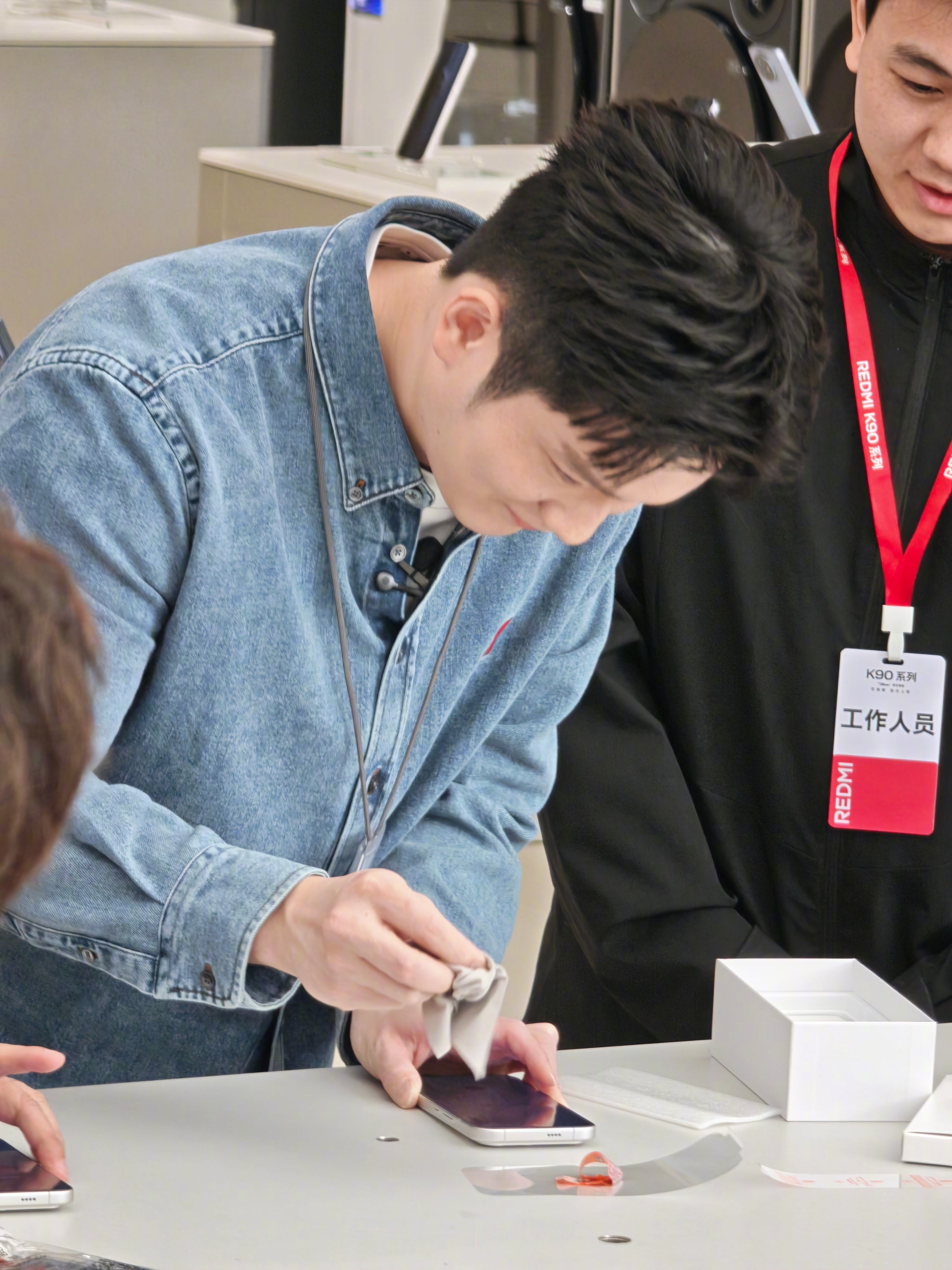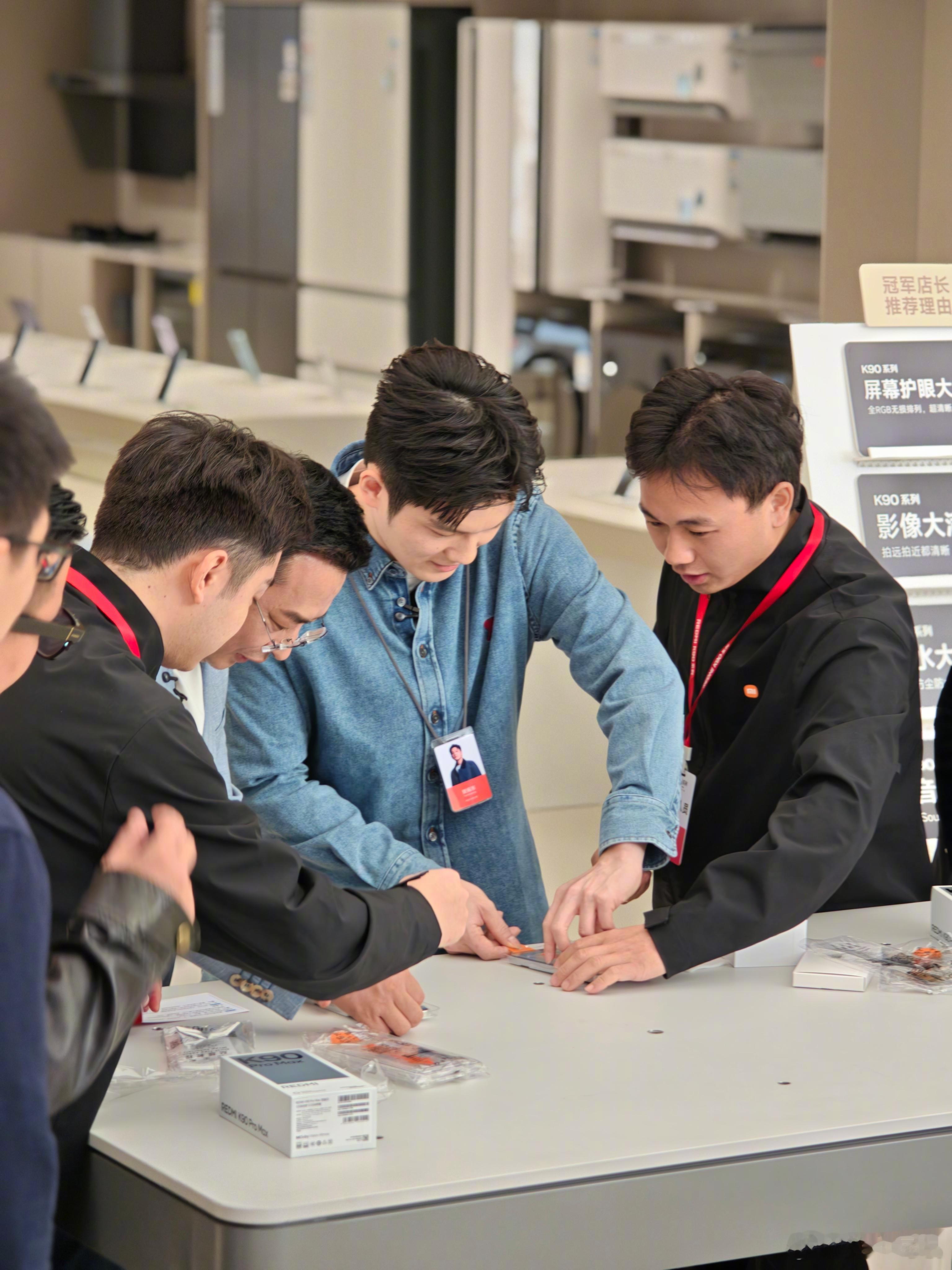 哈哈哈 樊振东现场给K90机主交付新机 还包现场贴膜看这手艺不像没贴过的