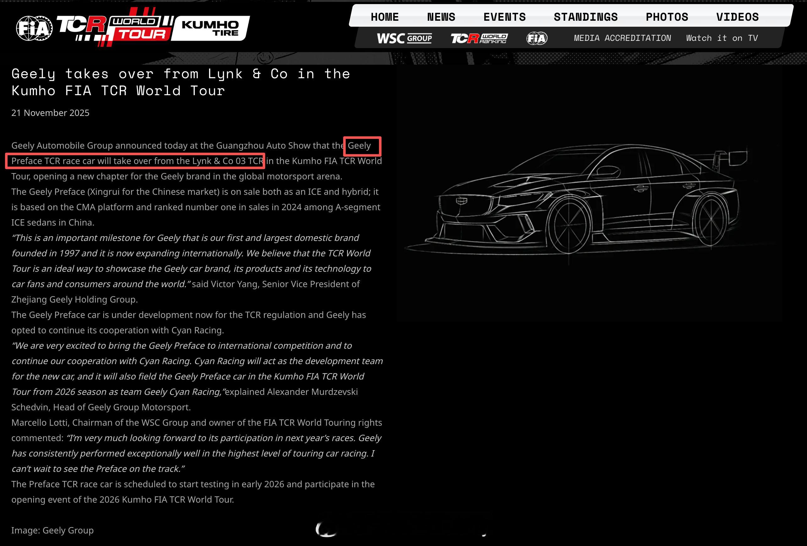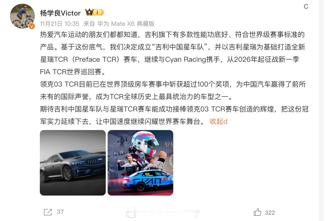 看到领克一个消息成立“吉利中国星车队”原参赛的车辆03 TCR要被星瑞TCR取代继续与Cyan Racing携手征战新一季FIA TCR世界巡回赛那吉利如何权衡“领克”品牌看看官方下一步的动向吧~~~