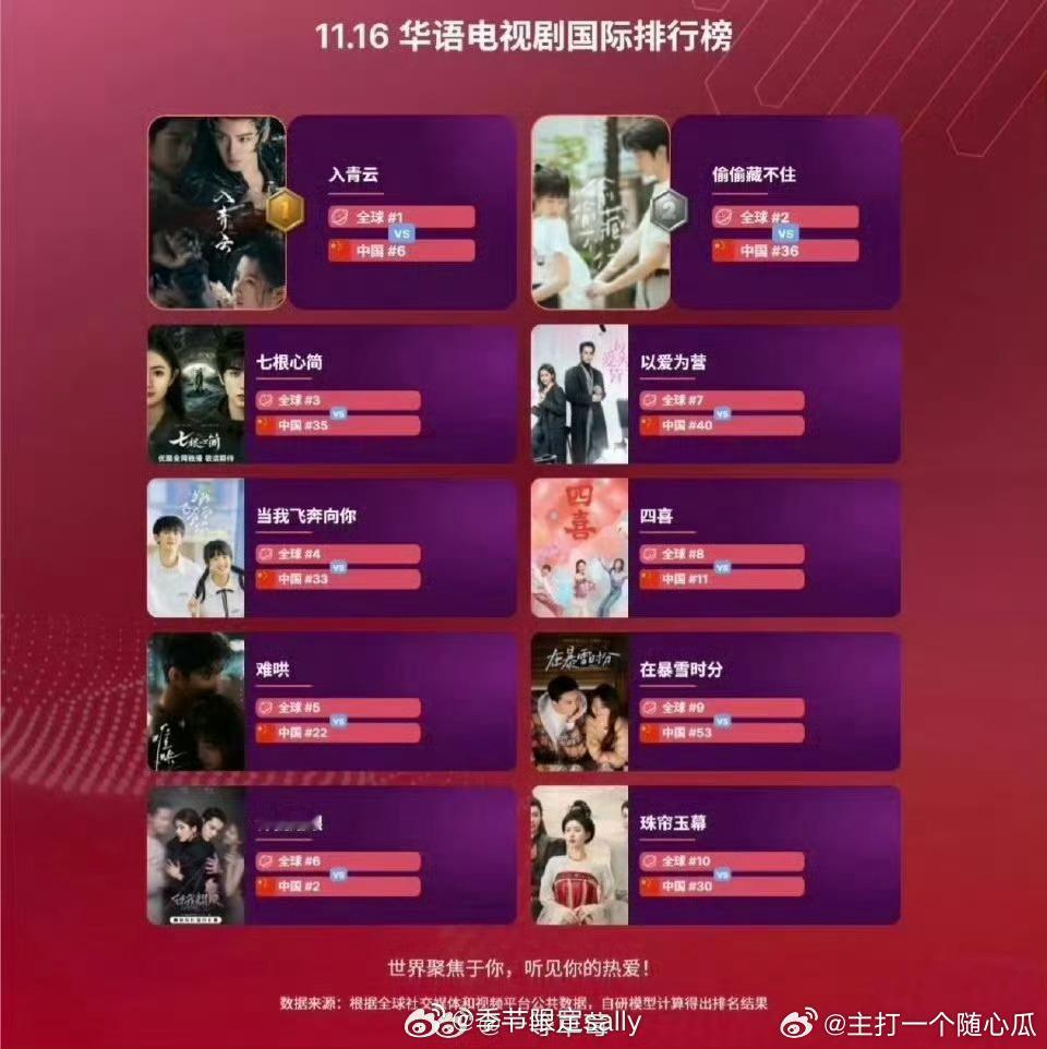 侯明昊、卢昱晓《入青云》之前还登顶华语电视剧国际排行TOP1 ,看来这剧还是被低
