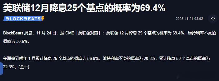 美联储12月可能降息,币圈或将开启新一轮上涨。最新数据显示降息概率接近70%,资金有望涌入高风险资产。历史经验显示,每次放水,比特币和以太坊都会迎来冲高。散户建议稳住底仓、按计划定投,同时留部分资金应对回调。短期波动不可避免,但降息落地后,回调就是抄底机会,聪明的钱已经开始布局,你还在观望吗?