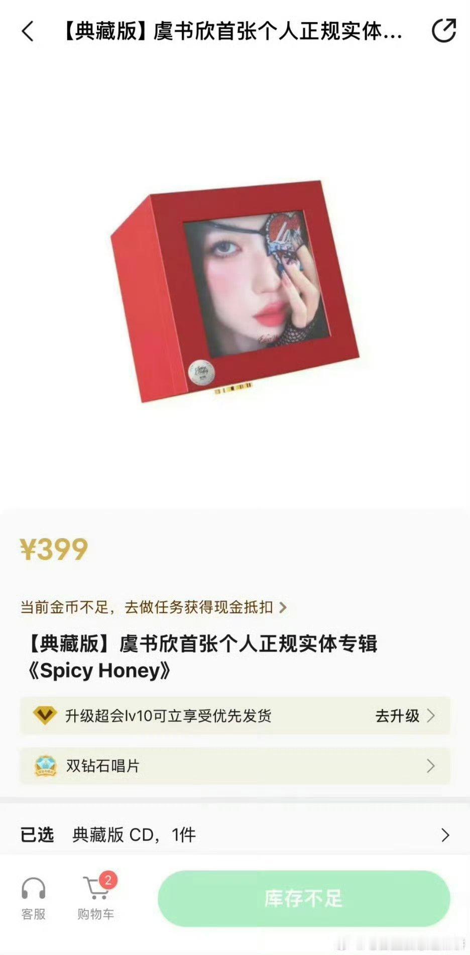 虞书欣个人实体专辑典藏版399一份,7.5w份秒售罄牛成这样