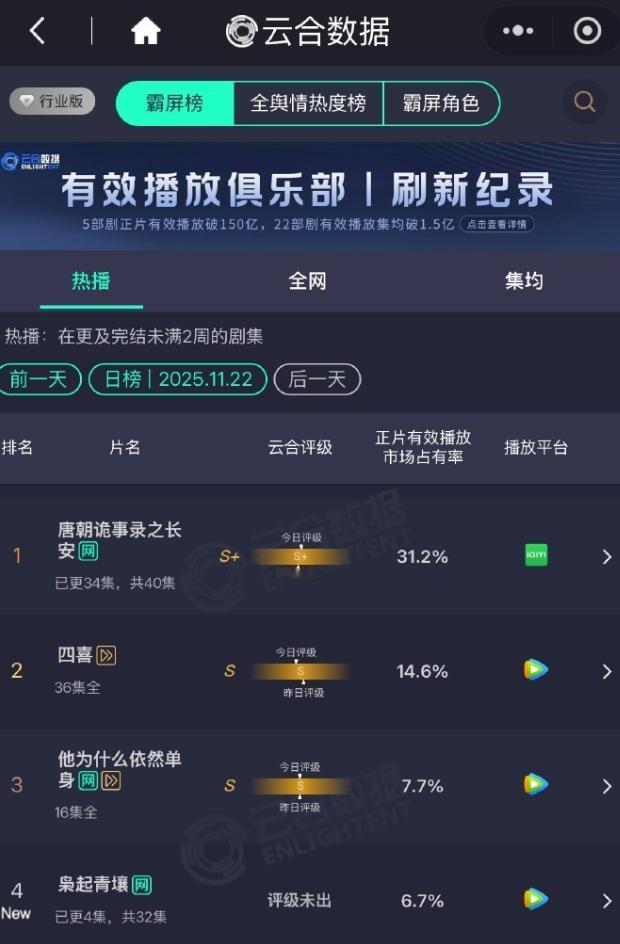 《唐朝诡事录之长安》收官全集有广! 从第一部没有广告,到第二部零星几个广告到第三部全集有广,IP越来越大了,广告数量171,仅次于《生万物》,广告时长4.65秒,爱奇艺全年第一,云合占比也终于突破30%大关了。