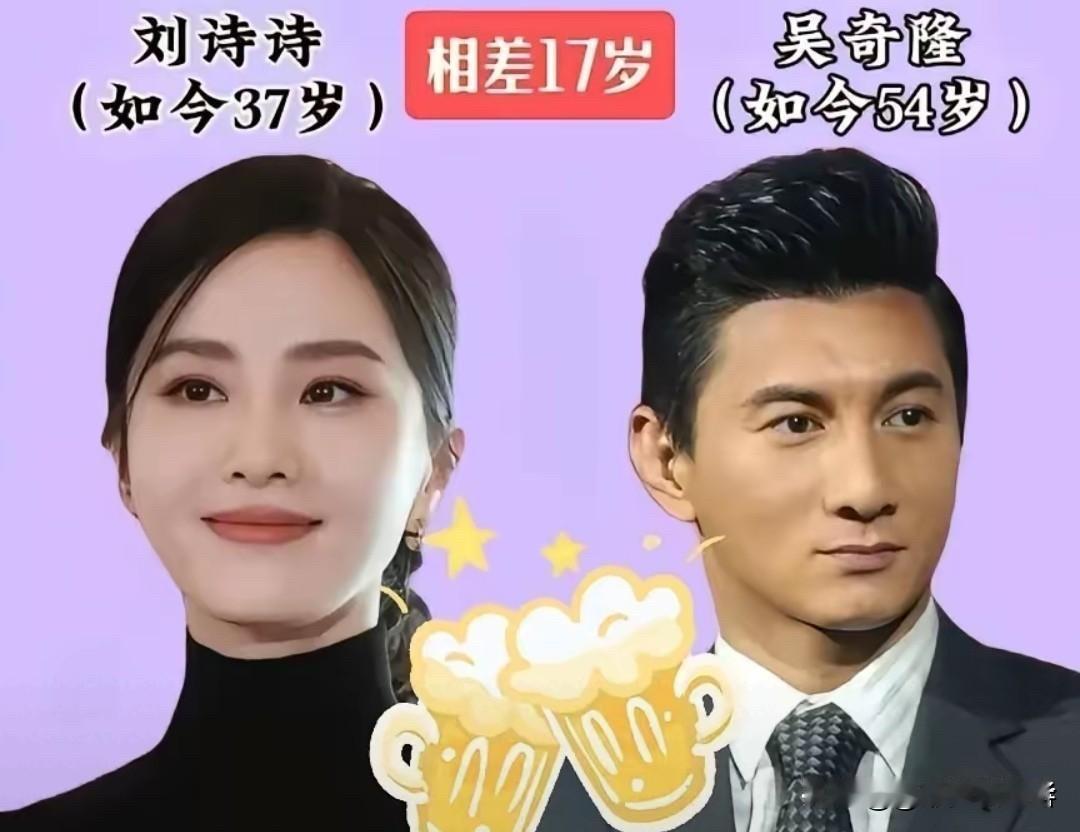 看看这些明星夫妻的年龄差 王刚和郑艳东:相差20岁的忘年交 王刚老师今年76了,他媳妇郑艳东才56。俩人是通过网络认识的,王刚演了半辈子和珅,最后找了个圈外媳妇。现在老来得子,过得美着呢。 吴奇隆和刘诗诗:相差17岁的步步惊心 吴奇隆54,刘诗诗37,俩人因戏结缘。从《步步惊心》里的四爷和若曦,到现实中的夫妻,这可真是戏里戏外都是缘。 徐峥和陶虹:同龄人的相濡以沫 徐峥和陶虹都是52岁,是大学同学。从《春光灿烂猪八戒》结缘,到现在一起在演艺圈打拼,是典型的从校园到婚纱。