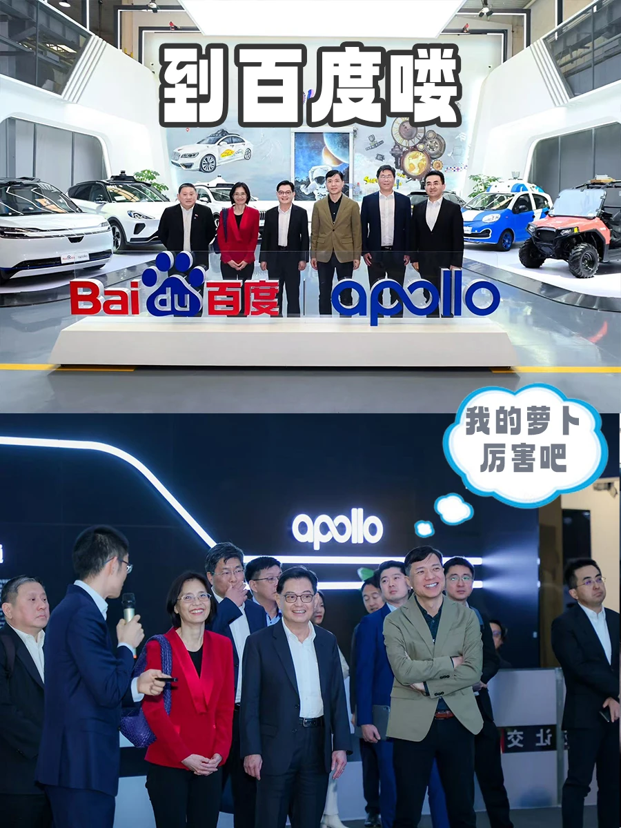 3月25日,新加坡副总理王瑞杰Heng Swee Keat一行到访百度Apollo Park,与百度创始人李彦宏会谈,还试乘了第六代萝卜快跑。