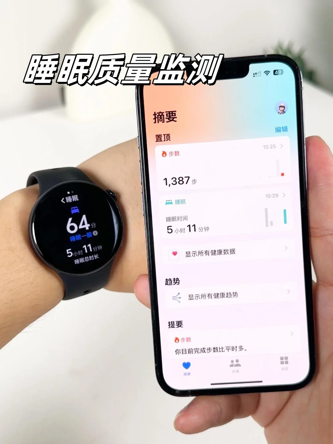 它除了可以测量血氧、心率,监测睡眠质量,而且长时间久坐,也会提醒让我活动一下,并且有详细的活动动作指导。