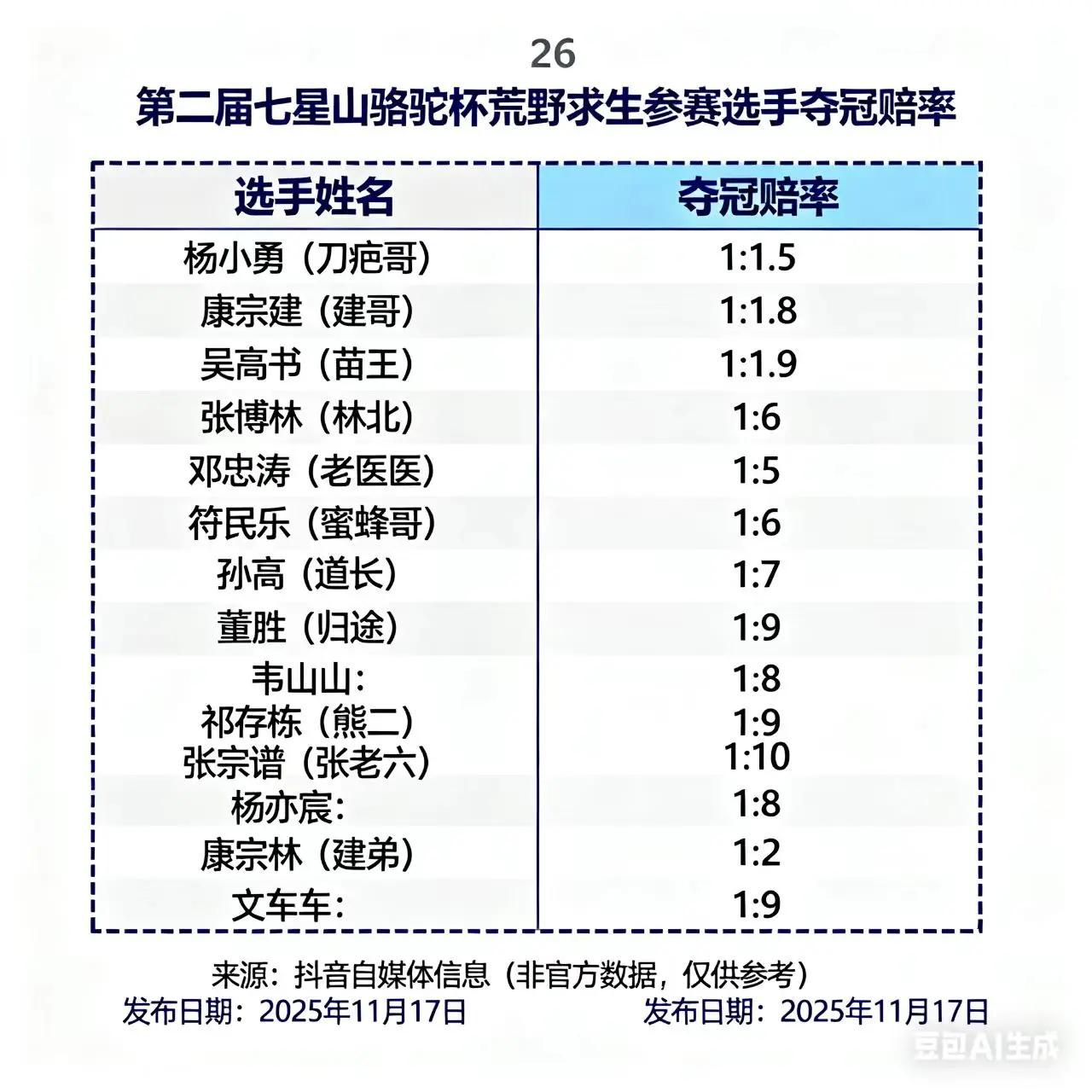 七星山骆驼杯赛选手夺冠赔率大揭秘!你看好谁?