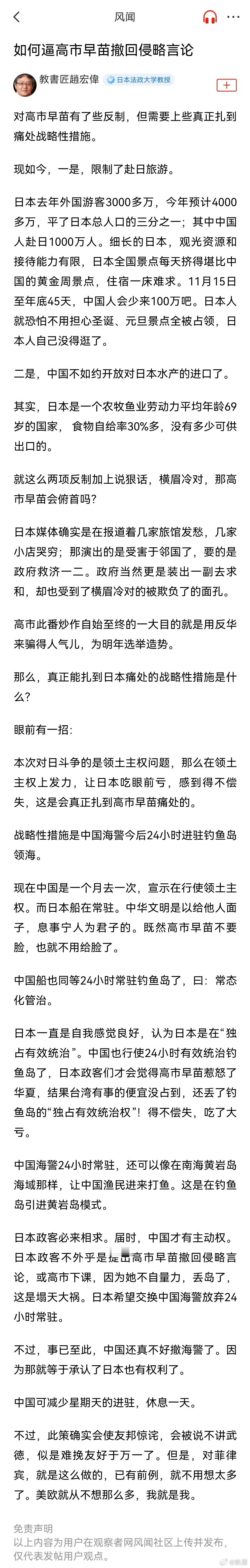 谢谢高市早苗,期待中国海警24小时常驻钓鱼岛。