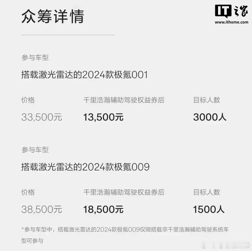 极氪推出了2024年激光雷达版本的001和009的智能辅助驾驶软硬件升级众筹项目…001优惠后需要13500,009需要18500!看了下改动的内容啊,堪称一个大工程了,甚至还列了补漆的费用!但是考虑到花一万多块钱就能拥有新的智能辅助驾驶,也还是挺不错的!那么,你会选择升级吗?