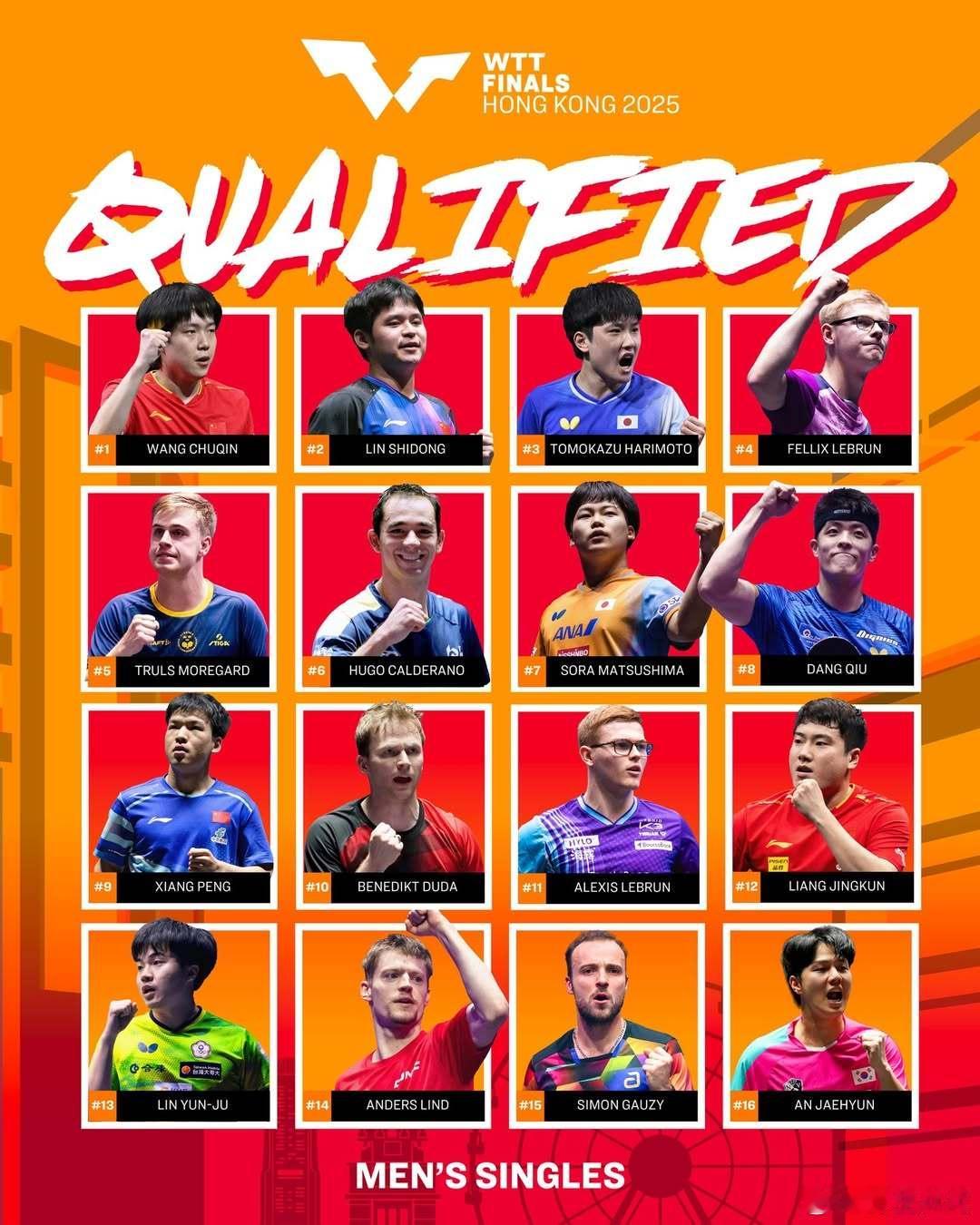 WTT香港总决赛参赛名单更新,国乒名单:【男单】王楚钦、林诗栋、向鹏、梁靖崑【女单】孙颖莎、王曼昱、陈幸同、蒯曼、王艺迪、陈熠、石洵瑶【混双】林诗栋/蒯曼