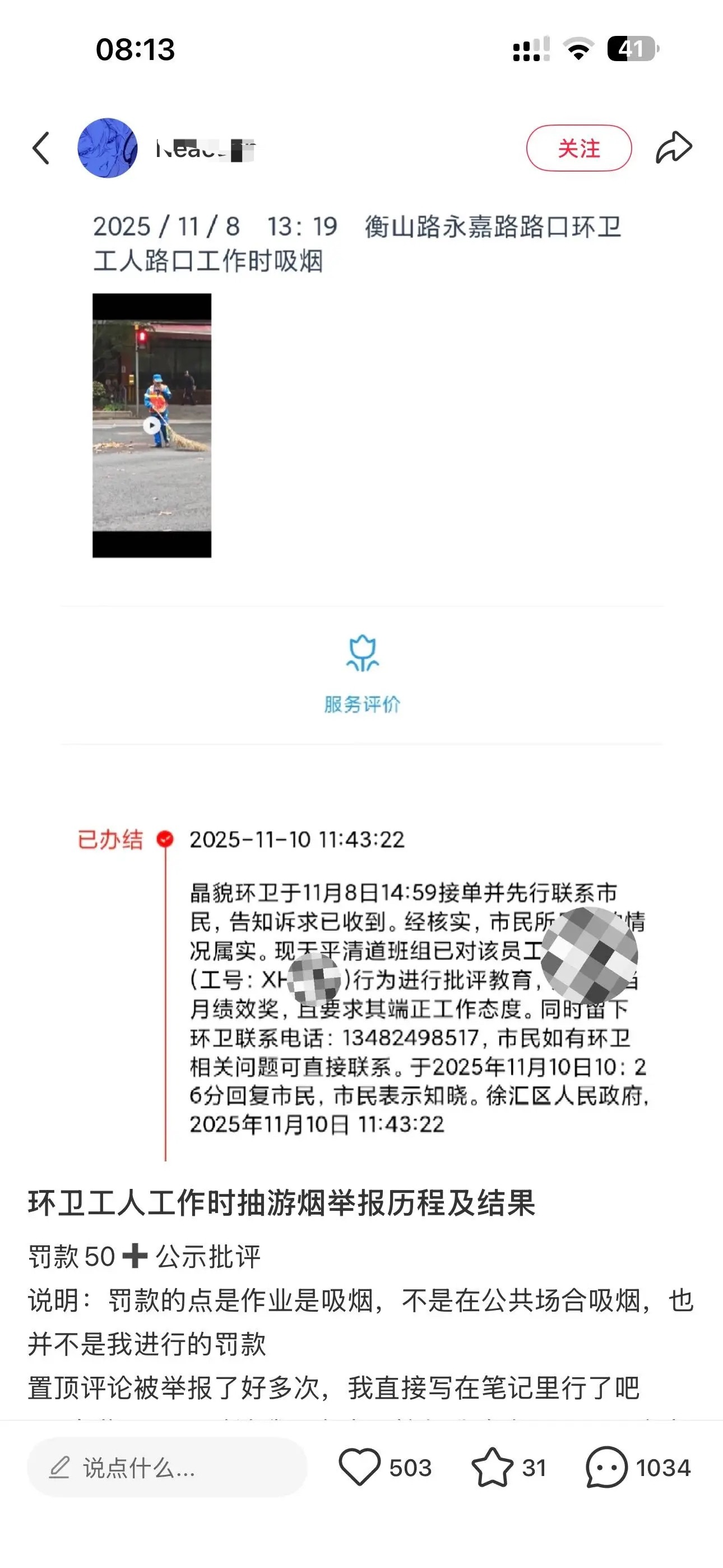有人举报环卫工人在工作期间吸烟,你怎么看?
