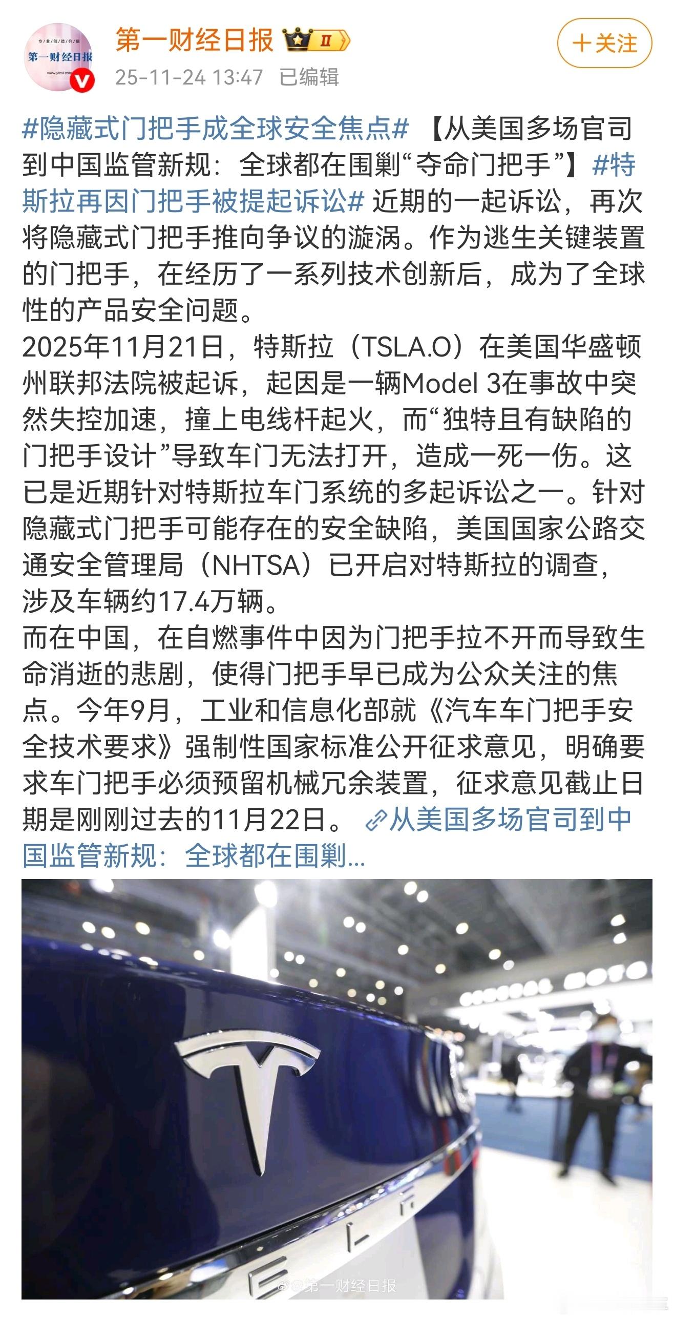 第一财经:从美国多场官司到中国监管新规:全球都在围剿“夺命门把手”