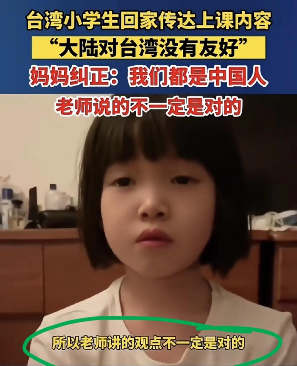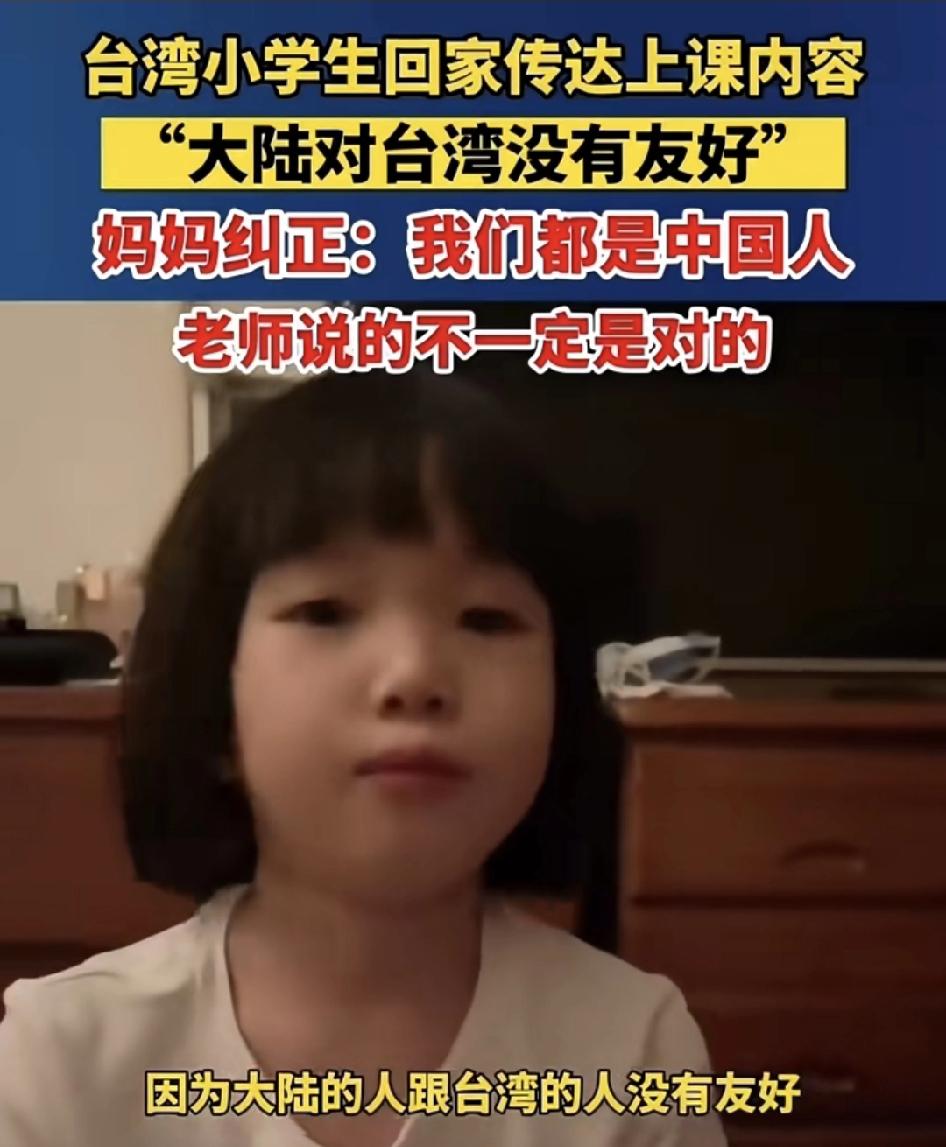 所以说爱国教育要从娃娃抓起! 荼毒湾湾儿童心灵的老师太可怕了! 对孩子讲大陆人不友好还不是最可怕的,那句“只有日本”才可怕! 岛国自己教科书否认历史、歪曲事实就算了,连其他国家的教育都在渗透! 幸亏小姑娘有个好妈妈,多给她讲历史,帮助下一代树立正确的价值观,为这位明事理有情怀的母亲点赞! 反观我们这边的教育,课本里都是友好同胞和乡愁,高低立判!