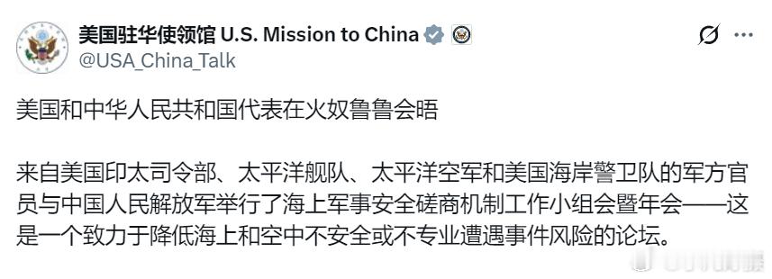 快讯!美国驻华大使馆刚刚的帖文:这是一个致力于降低海上和空中不安全或不专业遭遇事件风险的论坛。
