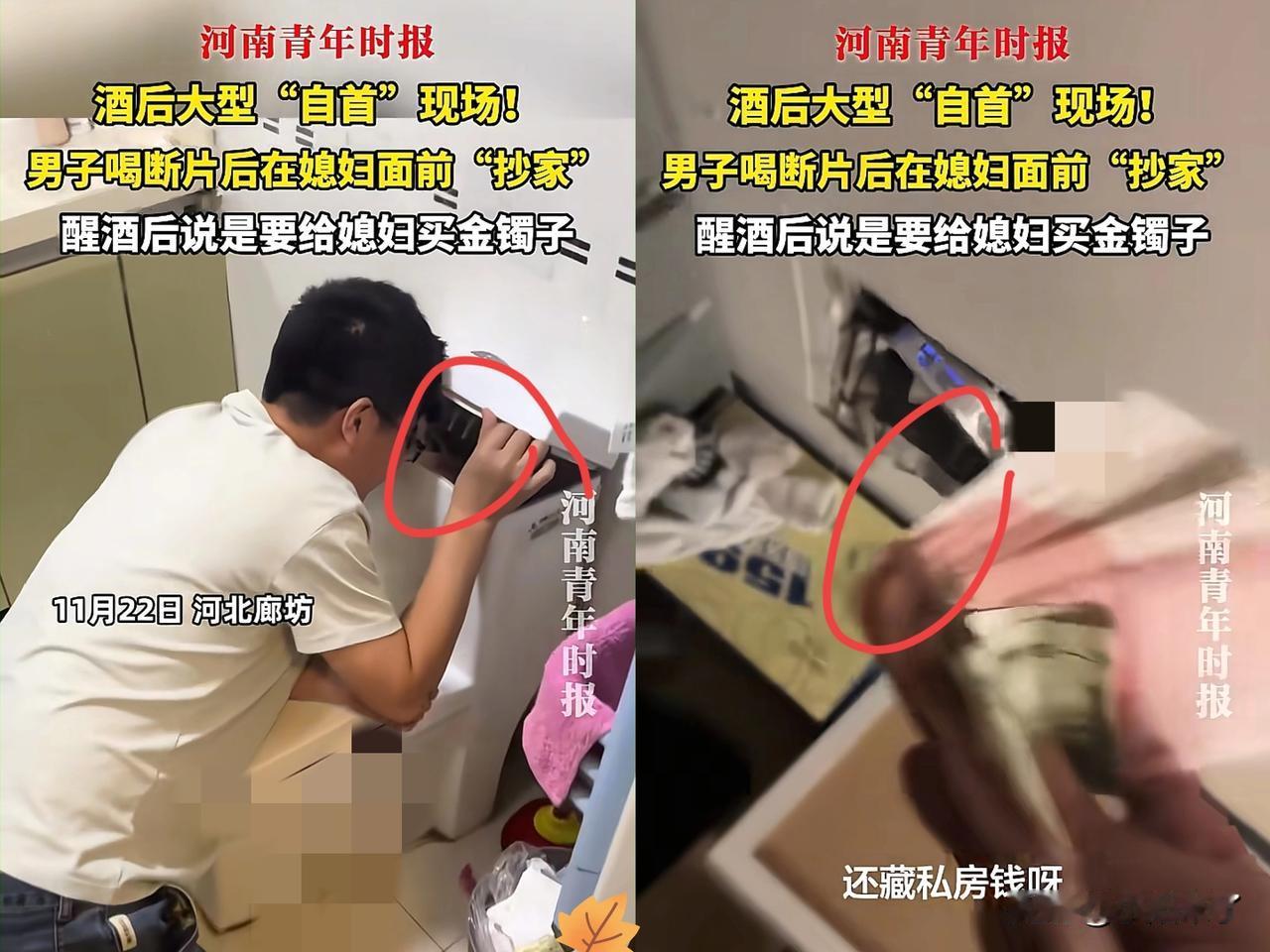 河北廊坊,男子在家喝酒喝断片。不料,把7000多块钱私房钱全找出来交给老婆。醒后眼角含泪还嘴硬“不后悔,本来就是给你买金镯子的”,那眼泪怕不是心疼钱疼出来的吧! 老婆炒了几个菜,他白酒喝4杯再加啤酒漱漱口,直接喝断片! 老婆随口问了句“藏私房钱没”,他倒好,立马开启“藏钱宝地大公开”模式,带着老婆女儿满屋“寻宝”! 马桶盖下摸一把、网线箱里掏一沓、玩偶熊肚子里抠一抠,踩着凳子从浴霸顶上扒下一沓,连女儿自行车车把、家里电闸箱都藏了钱,每找一处还嘿嘿直笑,像极了炫耀战利品的小孩,殊不知是在给自己“清空库存”! 最戳人的是,这7000多块全是百元大钞,大哥为了攒钱硬生生戒了烟,结果一顿酒全交了公! 但笑着笑着突然破防:大哥藏的哪里是私房钱,分明是不善言辞的温柔啊!平时羞于表达,却偷偷攒钱想给老婆买金镯子,喝断片后的坦诚,才是最藏不住的真心! 夫妻之间哪有什么真正的“私房钱”,不过是爱与包容的小插曲!