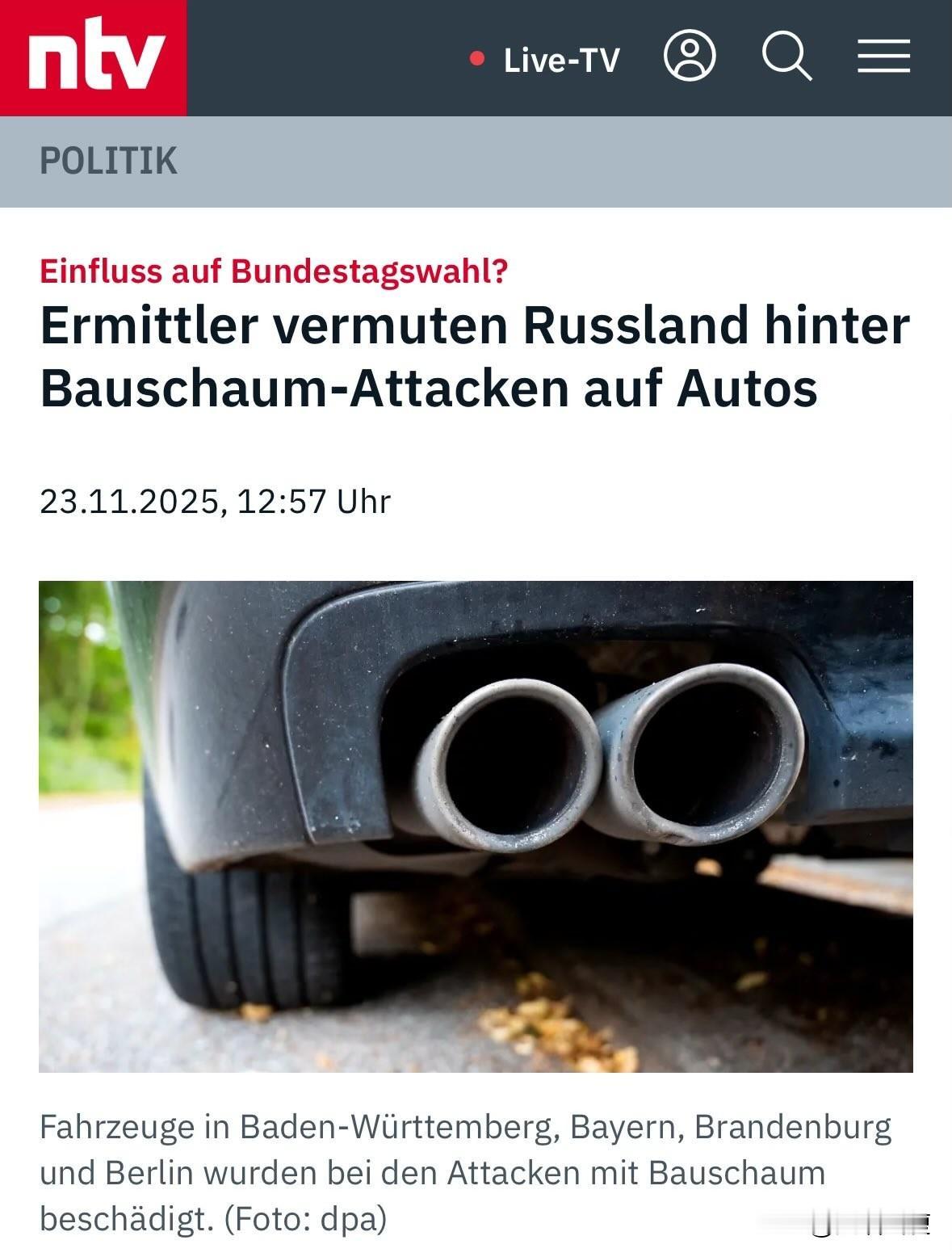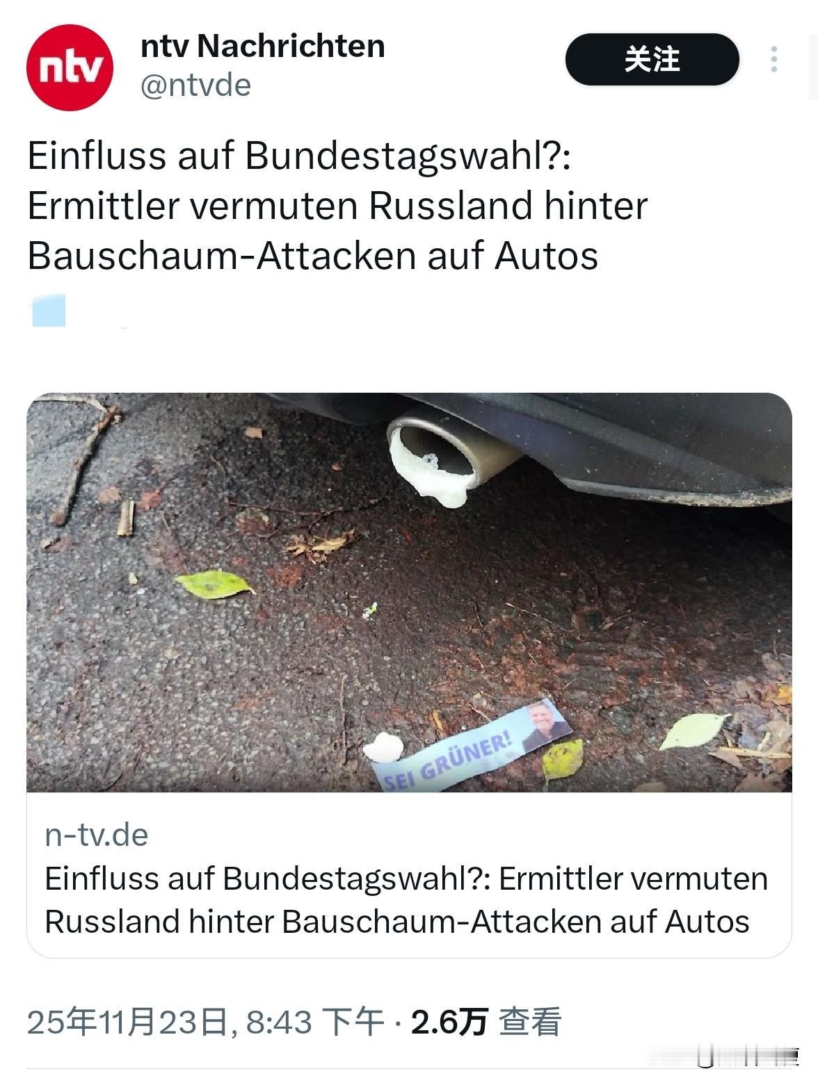 德国已经陷入了一种对俄罗斯的偏执。似乎他们身上任何事都有俄罗斯人在背后。 德国四个州去年12月,数百辆汽车的排气管被人用发泡材料堵住。德国调查了一年下来的结论是:【很可能是俄罗斯人干的!他们是来搞破坏的】 找不到人就全部归咎在俄罗斯身上,德国如今怎么也跟着卡拉斯后面学舌了呢?