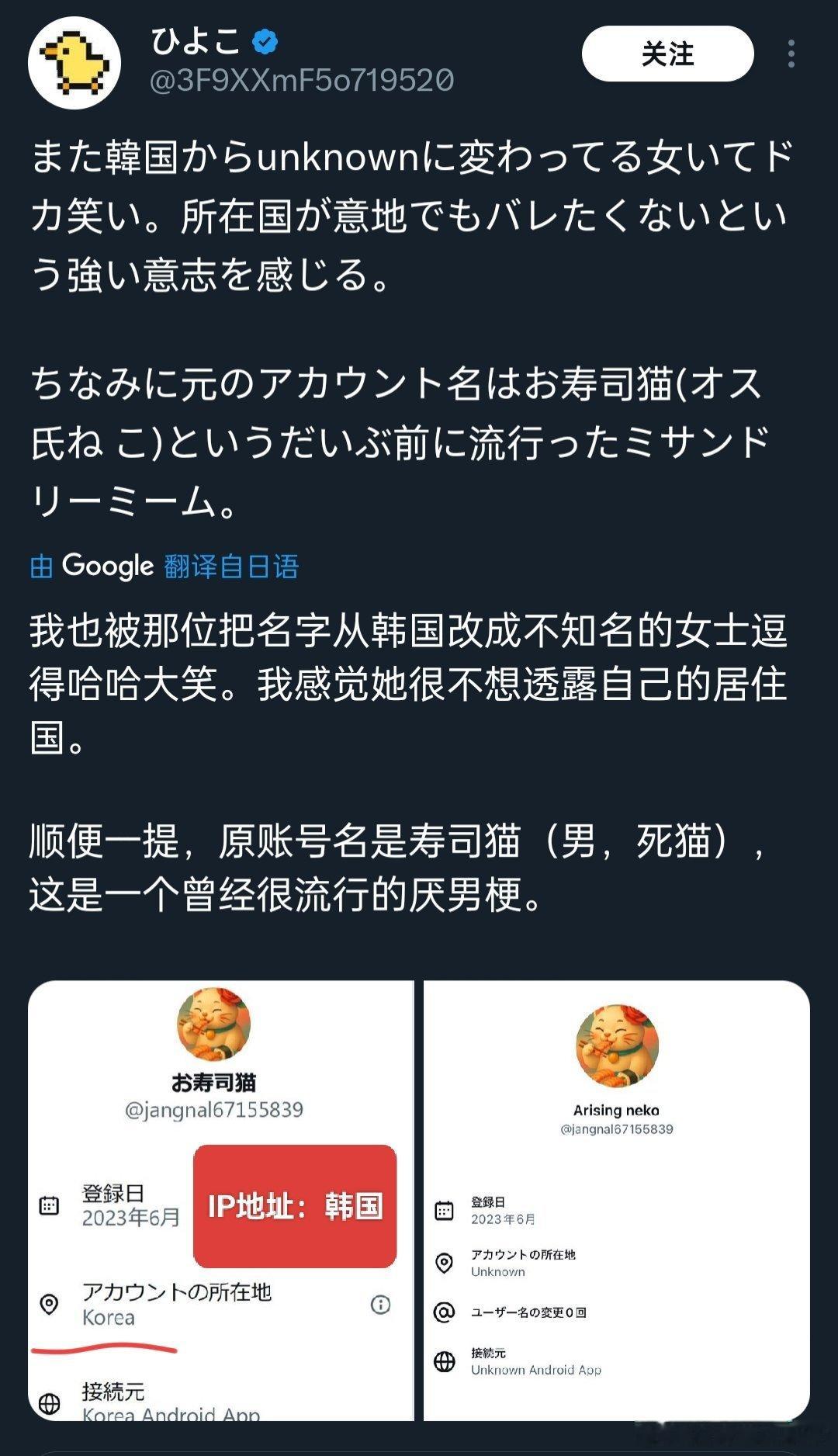 🔻推特显示账号所属地后,多个著名日本女👊账号被日本网友发现IP地址在韩国,这下尴尬了。韩国人为啥要扮演日本人骂日本男人?