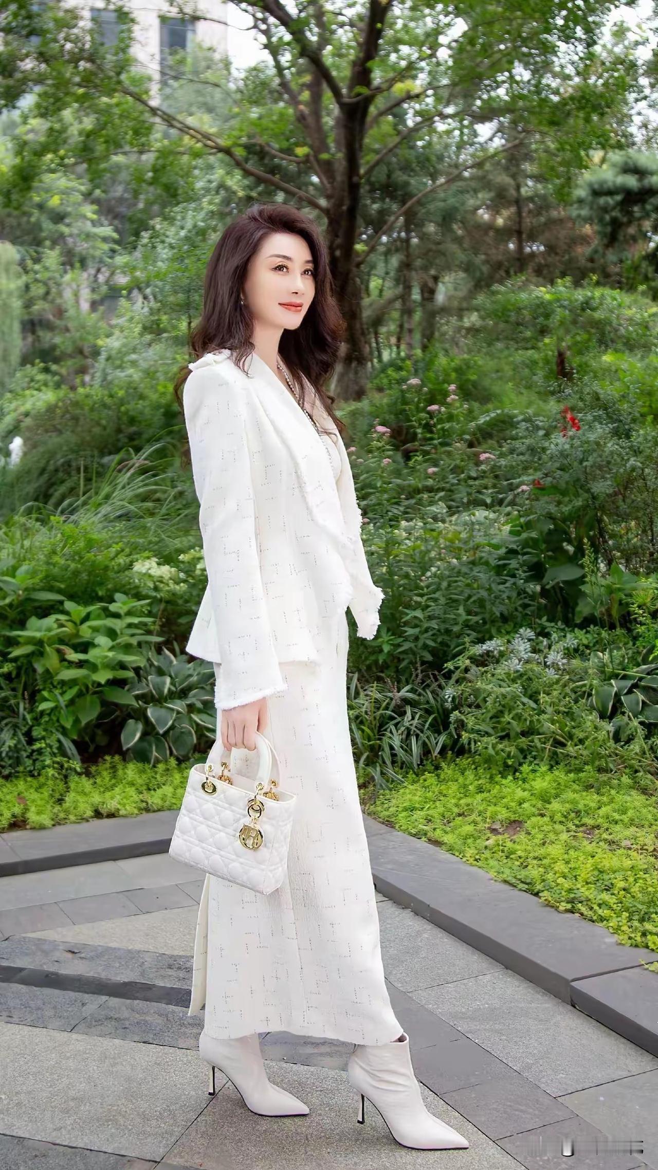 绿树掩映中,白衣美人行。