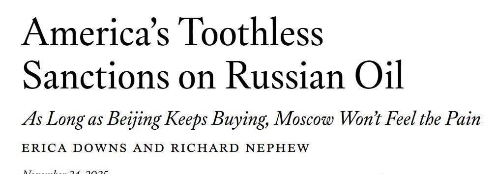 美国人的看法:美国对俄油制裁几乎失效——中国持续采购,莫斯科屹立不倒 尽管特朗