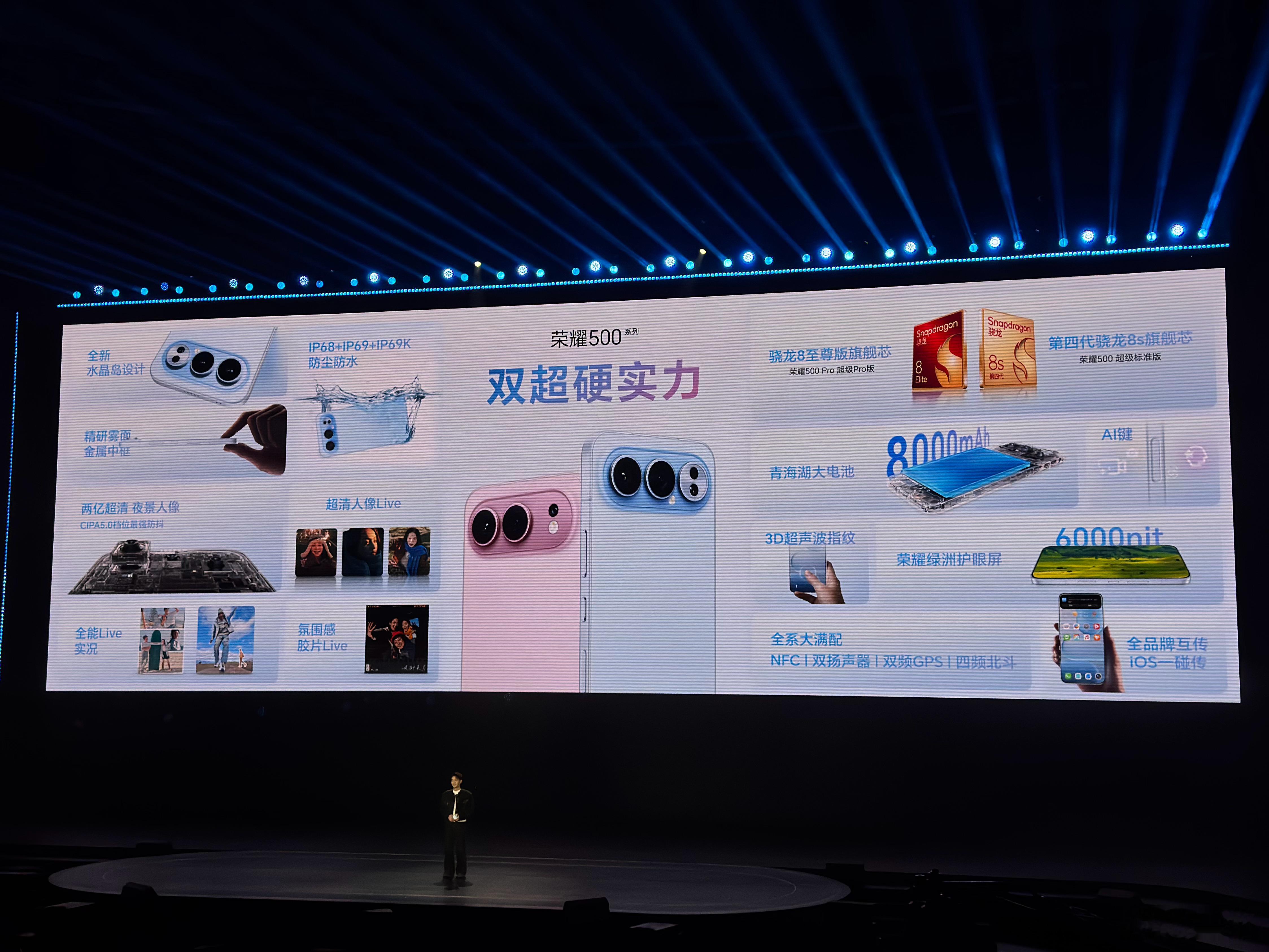 荣耀500标准版价格2699元起,Pro版本 3599元起~除了2 亿像素人像、前后置 Live 实况,这次最心动的是8000mAh 大电池,感觉出门不需要再带充电宝了,安全感满满