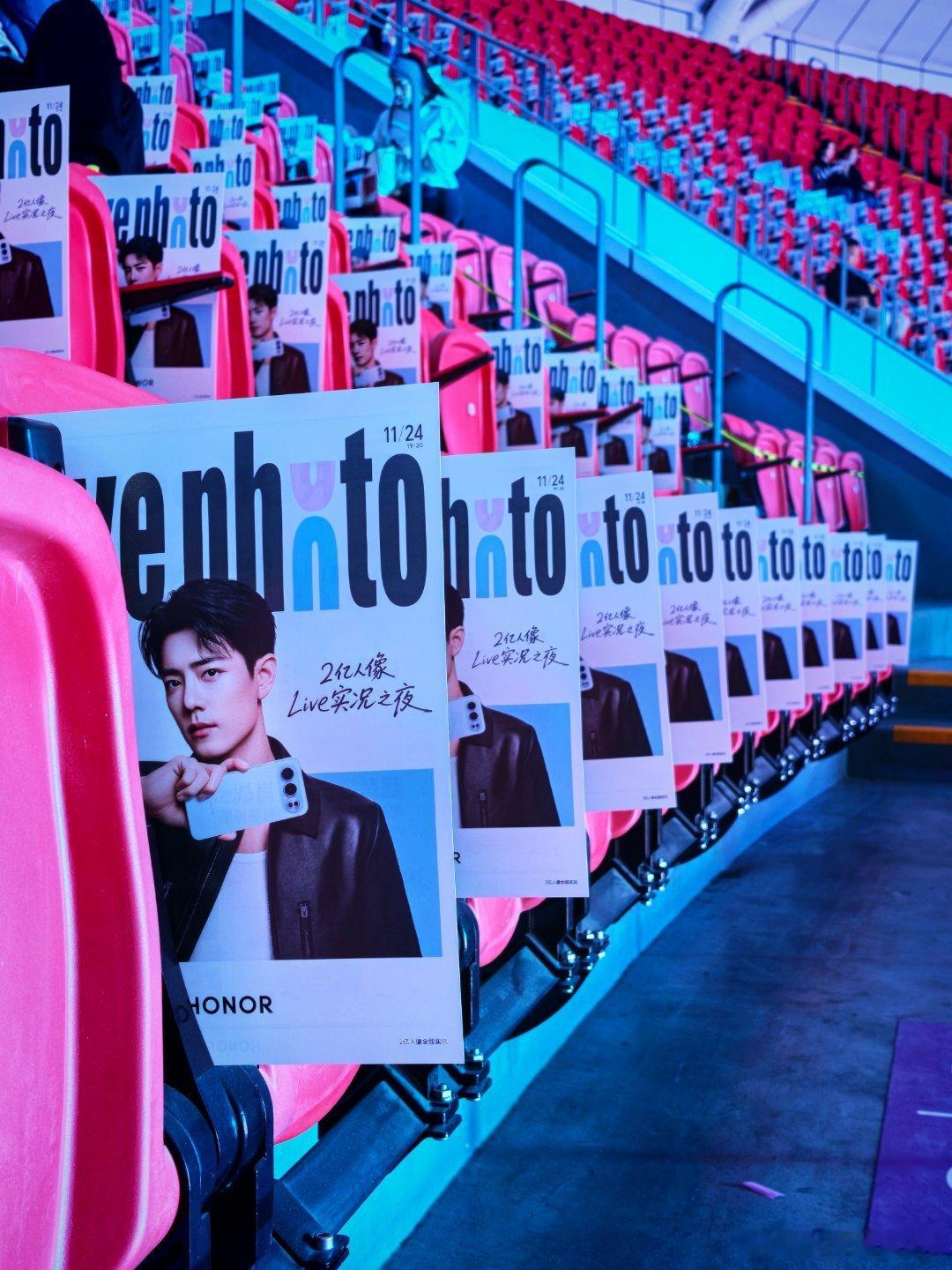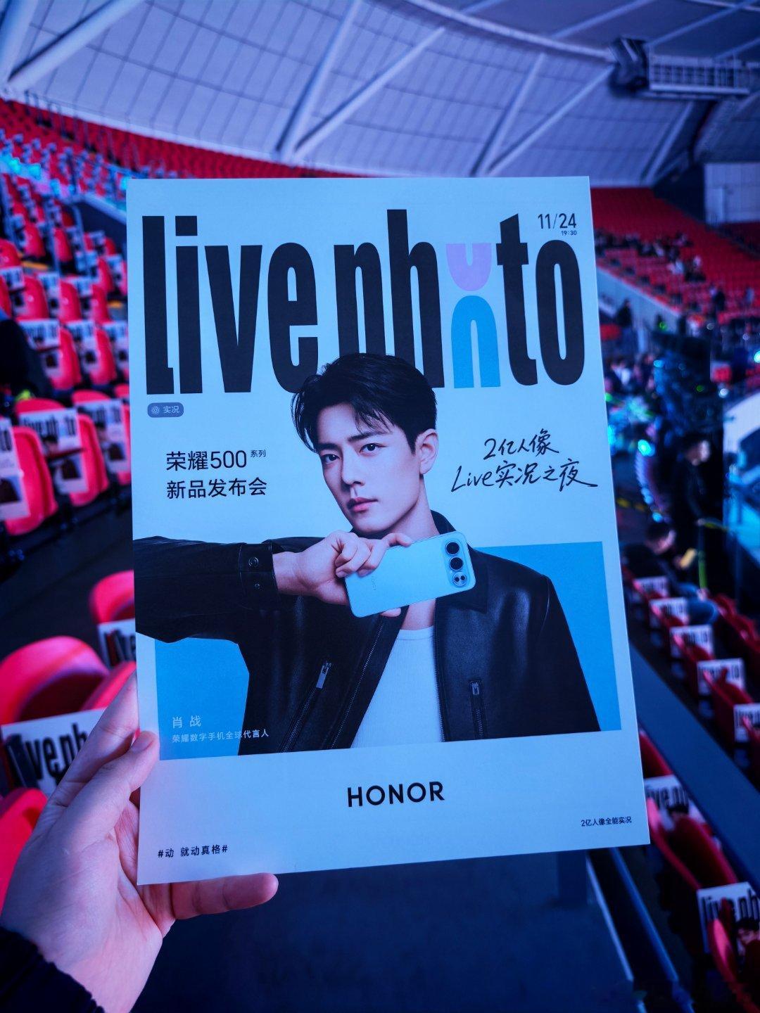到荣耀500系列发布会现场了,会场里边肖战元素拉满,每个座位上都有肖战的海报