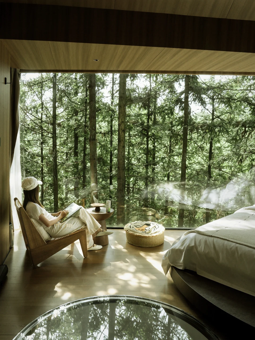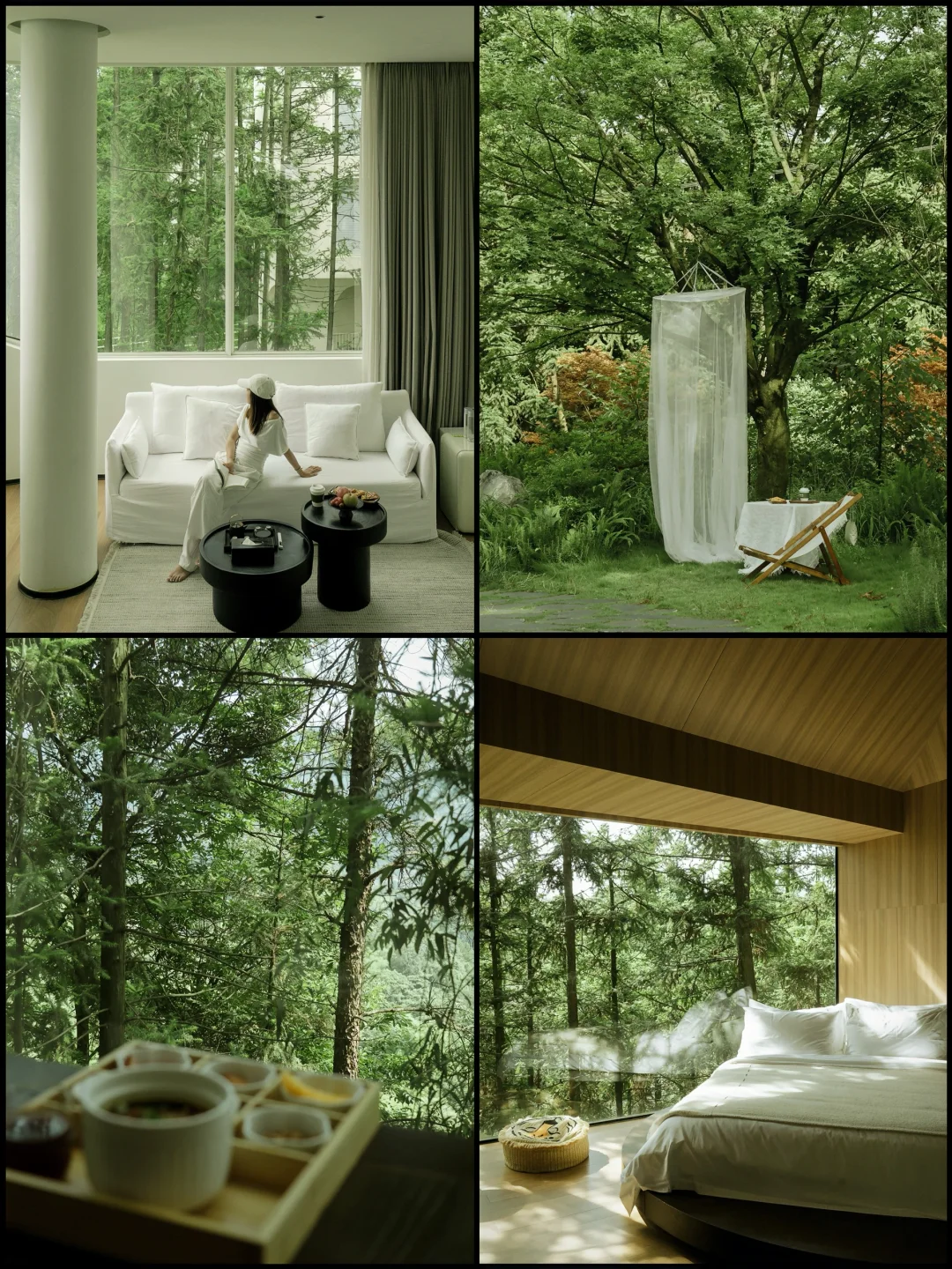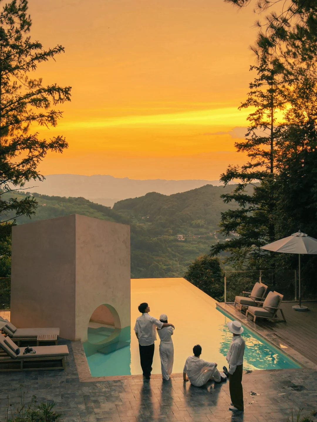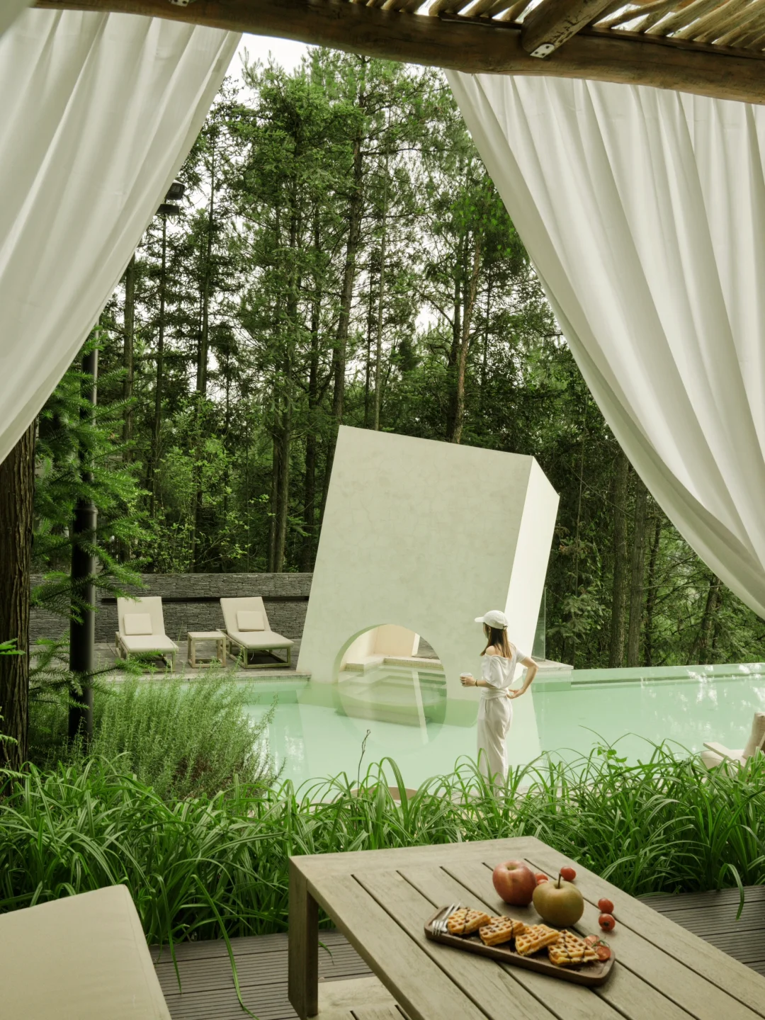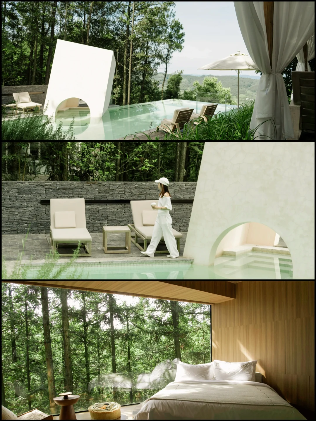 重庆的夏天啊 躲进山里才是正经事 一进山 温度直降10°C 风是凉的空气是甜的 呼吸都是树叶香 在山里的两天 浪费时间都变得理直气壮 睡到太阳晒屁股 趿着拖鞋去吃了碗红油小面 举着相机当街溜子 逮什么拍什么 树影在墙上画画 绿叶在风里翻跟头 下午就瘫在泳池这边当只猫 吊床上晃着听周杰伦的歌 困了回房间泡个私汤打个盹 绝的是晚饭后 散步撞见萤火虫漫天飞舞 像有人把星星撒在了林子里 果然啊 人活着就得往没天花板的地方钻 今年夏天被空调吹蔫的魂儿 是这片山林拿着大喇叭喊回来的 - 我是佐伊Zoey 和你越己阅世界🗺️