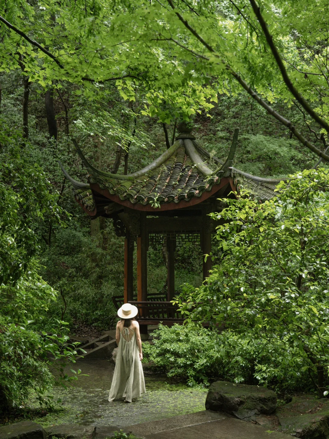杭州的夏天 绿得不像话\n这次来杭的居所就藏在这片葱郁里\n像一座被时光遗忘的避世小院\n终于打卡我心念念了很久的夕上·虎跑1934🤗\n\t\n推门进房的瞬间 就被细节打动\n床上的tips小卡、提前调好的室内温度等等\n住过太多酒店 能让人心头一软的\n永远是这些\"多余\"的体贴\n这一定是打动人心的窍门🥹\n\t\n晴天的公区铺满光影 而雨天更妙\n坐在池边 看雨水顺着屋檐滴落\n忽然就懂了什么叫\"虚度光阴\"\n这里的每一处角落都安静得恰到好处\n感受到的舒服感也没能百分百表达出来\n但我知道只要是住过的你一定会懂🙌\n\t\n都说杭州是美食荒漠 直到遇见月芽餐厅\n鲜虾牛油果沙拉清爽开胃 照烧鳕鱼的外焦里嫩\n连餐前面包都好吃得不像话\n退房时才发现 最舍不得的居然是这里的早餐😭\n\t\n临走前散步去了虎跑公园\n能心安理得地把时间\"浪费\"在一个地方\n何尝不也是一种幸福呢\n我在5月的杭州 度过了一场美感初夏🍃\n-\n我是佐伊Zoey 和你越己阅世界🗺️\n先出发再说我是快乐行动派杭州杭州酒店发现宝藏酒店周末去哪儿小众景点杭州拍照治愈系风景住进风景里小众度假酒店杭州小众旅行地我拍到的治愈系风景杭州拍照浪漫生活的记录者