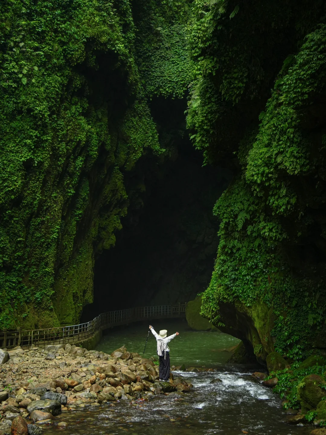 虽然这个地方位于百色是超纲了 但和崇左挨着可以一起玩 我之前有单独写过一篇 “中国自己的侏罗纪植物园”就非常适合用来形容通灵 大大小小两千多种植物、巨大的倒挂钟乳石、溶洞和百米高的瀑布 可观性丰富很有原始森林感 作为新手徒步路线也很友好呢