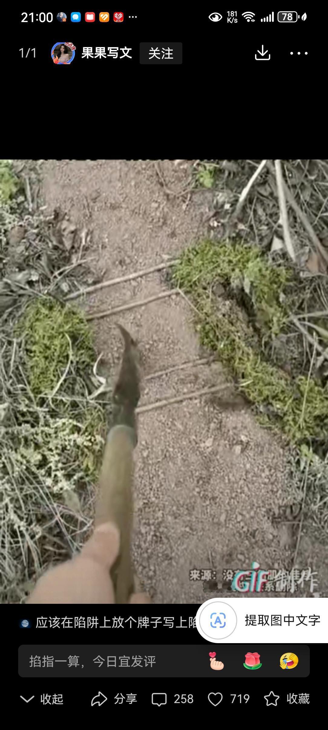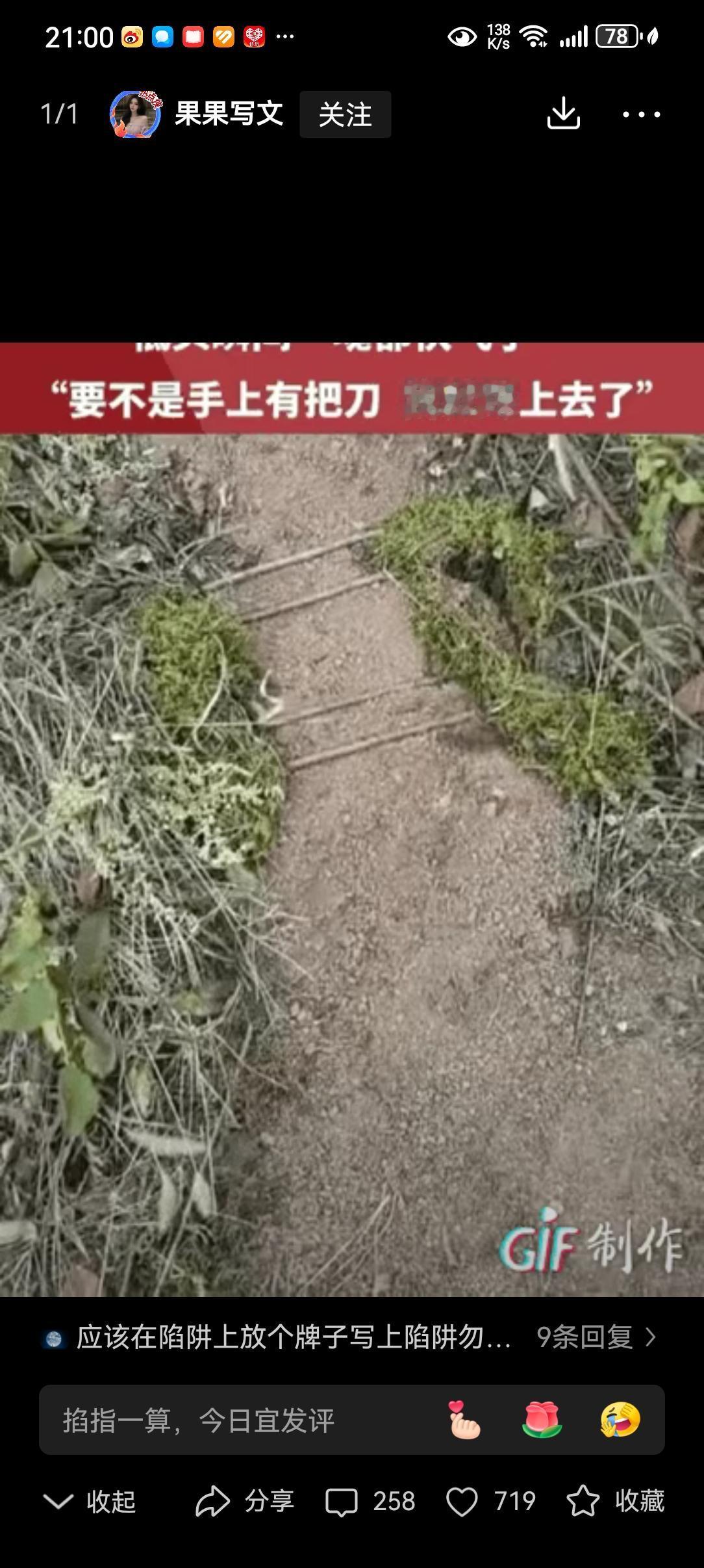吓出冷汗!女子上山打板栗,山路上摆着整整齐齐的4根小枯枝。女子觉得不对劲,拿起弯刀用力一戳,土地瞬间炸开了,吓得女子直冒冷汗。 (来源:都市频道) 一女子上山打板栗,拿着一把弯刀在山路上走,突然发现前面路中央整整齐齐摆着四根枯树枝,她心里咯噔一下——山里的草木向来杂乱,这般刻意的规整,多半藏着猫腻。 她没敢落脚,反手举起弯刀往枯枝处一戳,只听“咔嗒”一声闷响,泥土瞬间炸开,四处飞溅,一股土腥味直冲鼻腔。 待烟尘散去,那只张着血盆大口的捕兽夹,正死死咬着弯刀的刀刃。她后背早被冷汗浸透:这要是踩上去,半条腿怕是保不住了。 后来她回想,那陷阱伪装得极深,枯枝下铺着薄土,周围又撒了些杂草,不仔细瞧,跟寻常山路别无二致。可谁能想到,这看似平静的山野间,竟藏着这般致命的杀机。 捕兽夹本是用来捕猎的,可山野是公共之地,不是私人的狩猎场。上山拾柴的老人、放学贪玩的孩子、来体验野趣的游客,谁都可能成为无辜的受害者。 前几日便有新闻,邻村老汉上山挖药,误踩捕兽夹,小腿骨当场被夹碎,躺了大半年病床不说,肇事者至今逍遥法外,后续的赔偿更是没了着落。这般损人不利己的勾当,终究要付出代价。 进山的朋友切记,脚步慢一点,眼睛亮一点,别总盯着手机屏幕。遇到可疑的枯枝、土堆,千万别好奇去碰,多一分警惕,就少一分危险。