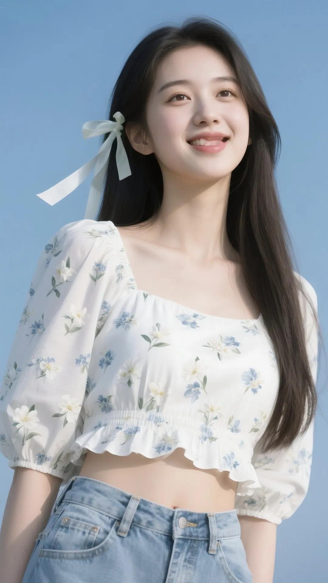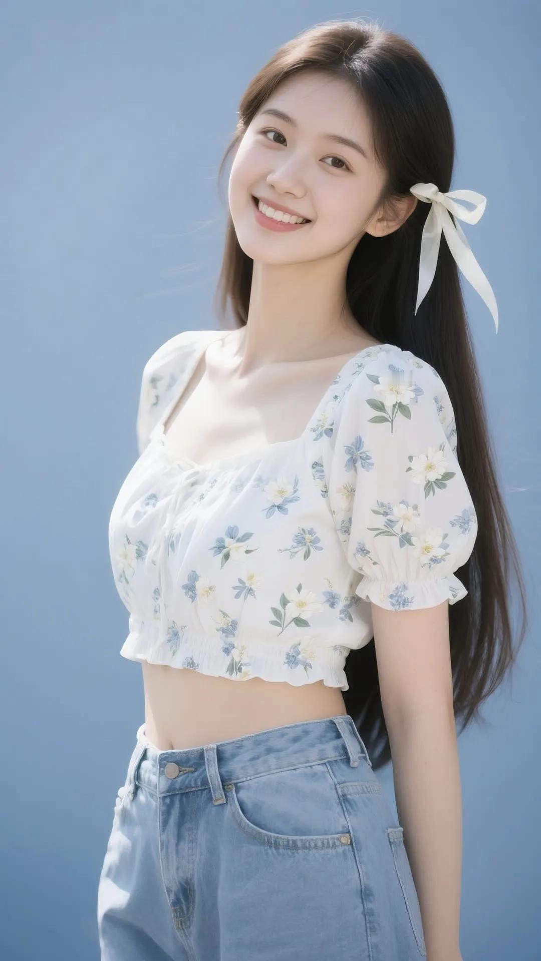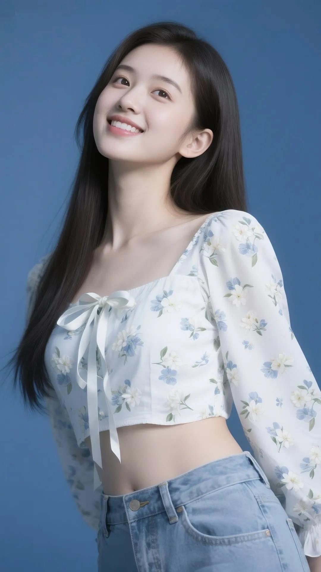 梦幻蓝裙少女,温柔似水,宛如画中仙子。
