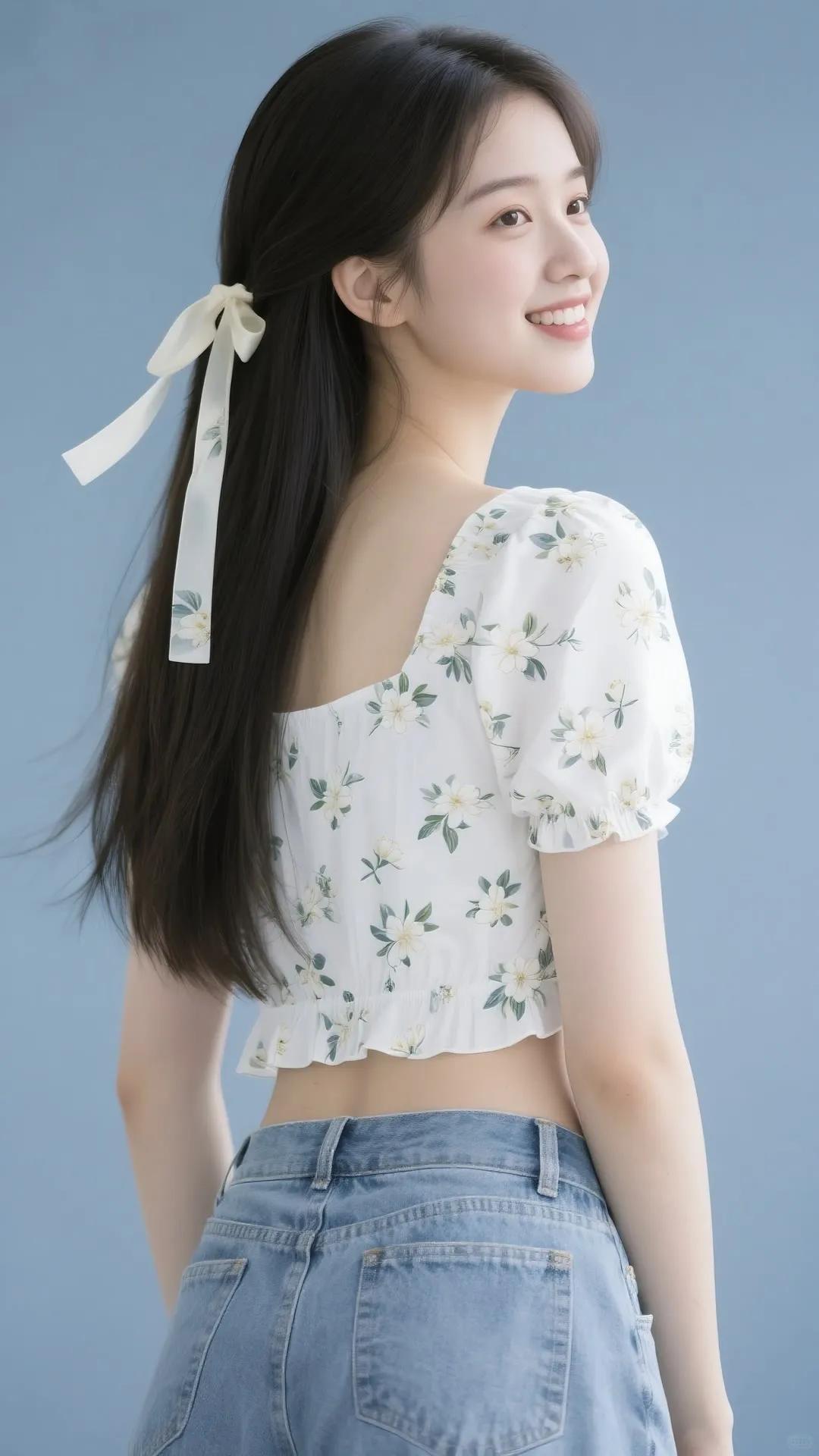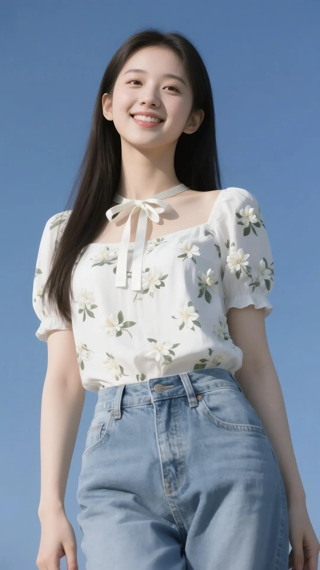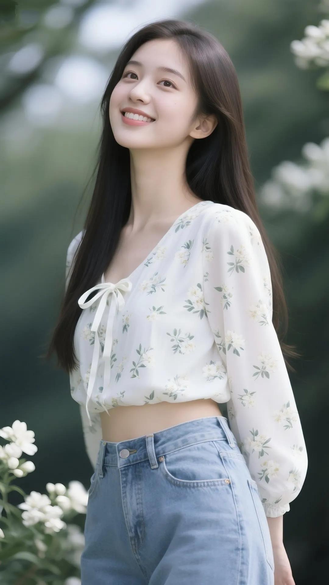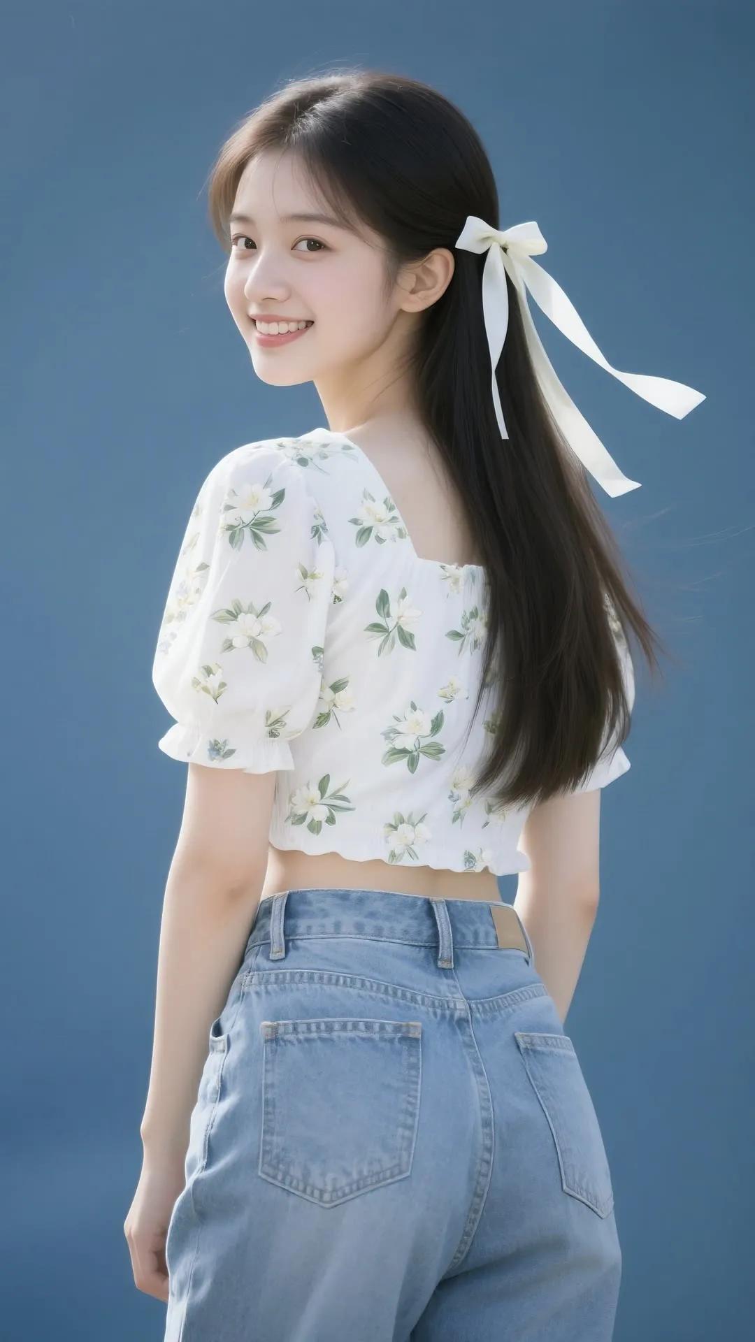 梦幻蓝裙少女,温柔似水,宛如画中仙子。
