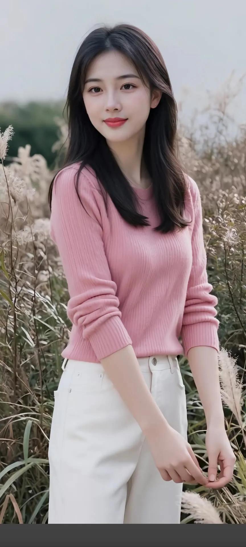 温柔古典风,白衣少女,粉色刺绣,优雅动人