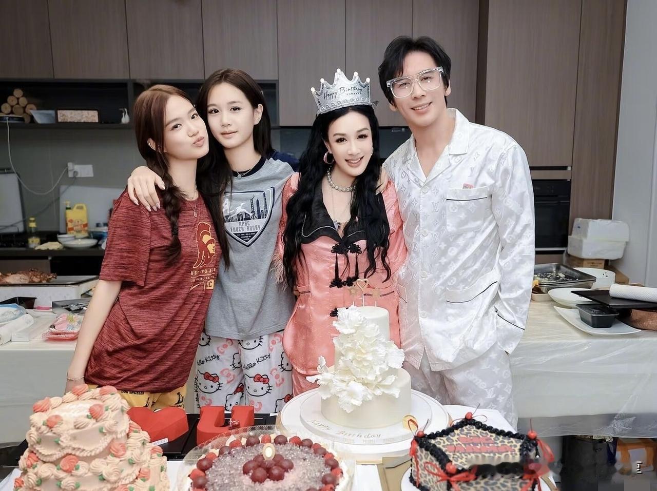果然长的好看的人就算是穿一套居家的睡衣,也是美艳的不可方物,照片中的钟丽缇50几岁了一样的迷人,气质不输旁边的女儿们。 她的老公也依旧是那么帅气,一家人在一起吃蛋糕,其乐融融,幸福温馨,你喜欢这一对明星夫妻吗?