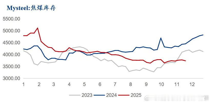 523矿山405.4万吨+314洗煤厂487.0万吨+港口603.4万吨+口岸及堆场406.3万吨,叠加焦化厂1038.2万吨+钢厂797.1万吨,合计炼焦煤总库存3737.3万吨,周环比降1%,同比降15.7%;除了蒙煤口岸及堆场略有累库,煤矿、洗煤厂以及港口库存均表现出下降趋势,下游库存小幅增库;一方面矿方价格高企,下游接受意愿不强;另外一方面,冬储补库意识减弱,集中补库时间或往后推迟。目前焦煤成本已开始松动,后期随着焦炭价格下跌,市场煤仍有一定的让利空间。