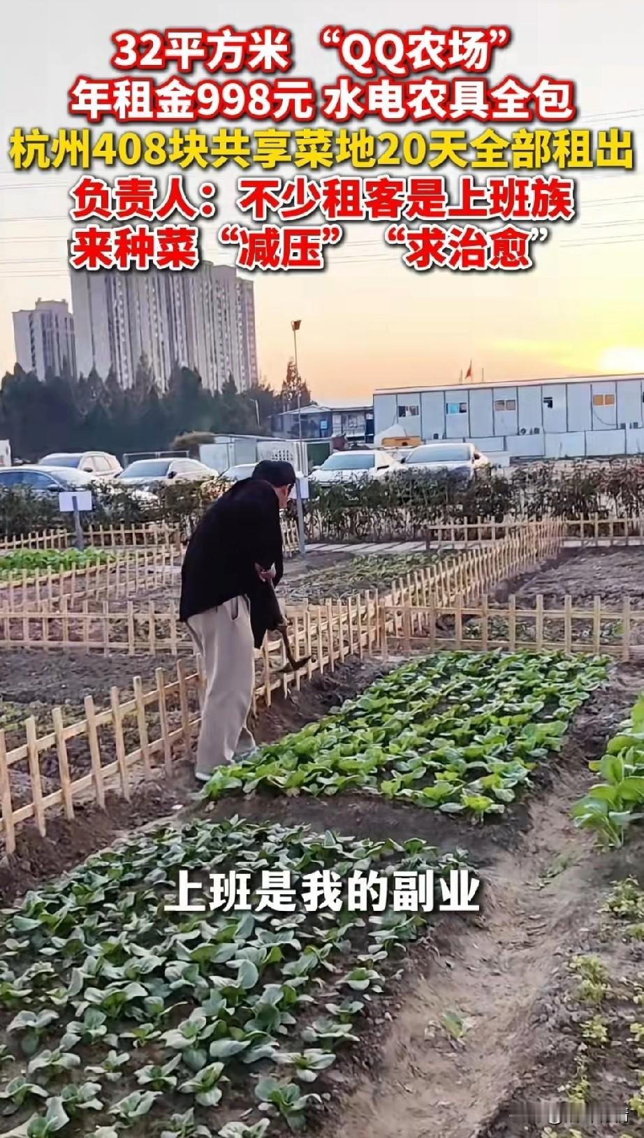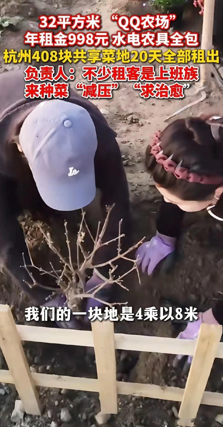 32㎡的QQ农场既然在现实上演了, 杭州的408块共享菜园20天全部出租完成,年租金998元,水电农具全包! 背后的老板居然是年轻的女生, 她的这个主演真的是太好了, 她表示上班是她的副业, 他主业就是在菜园种菜, 她的许多客户都是上班族, 都是靠平时休息的时间来种菜解压, 一年的租金也不贵, 很多年轻人都愿意来体验, 毕竟自己种出来的蔬菜才是最好的, 让更多的城市青年了解蔬菜, 毕竟有些人根本不知道蔬菜是怎么生长的,这样他们就有了一块属于自己的菜园,想种什么蔬菜都可以尝试, 大家对于杭州女孩开的共享菜园怎么看? 杭州 杭州身边事 你会支持共享菜园吗
