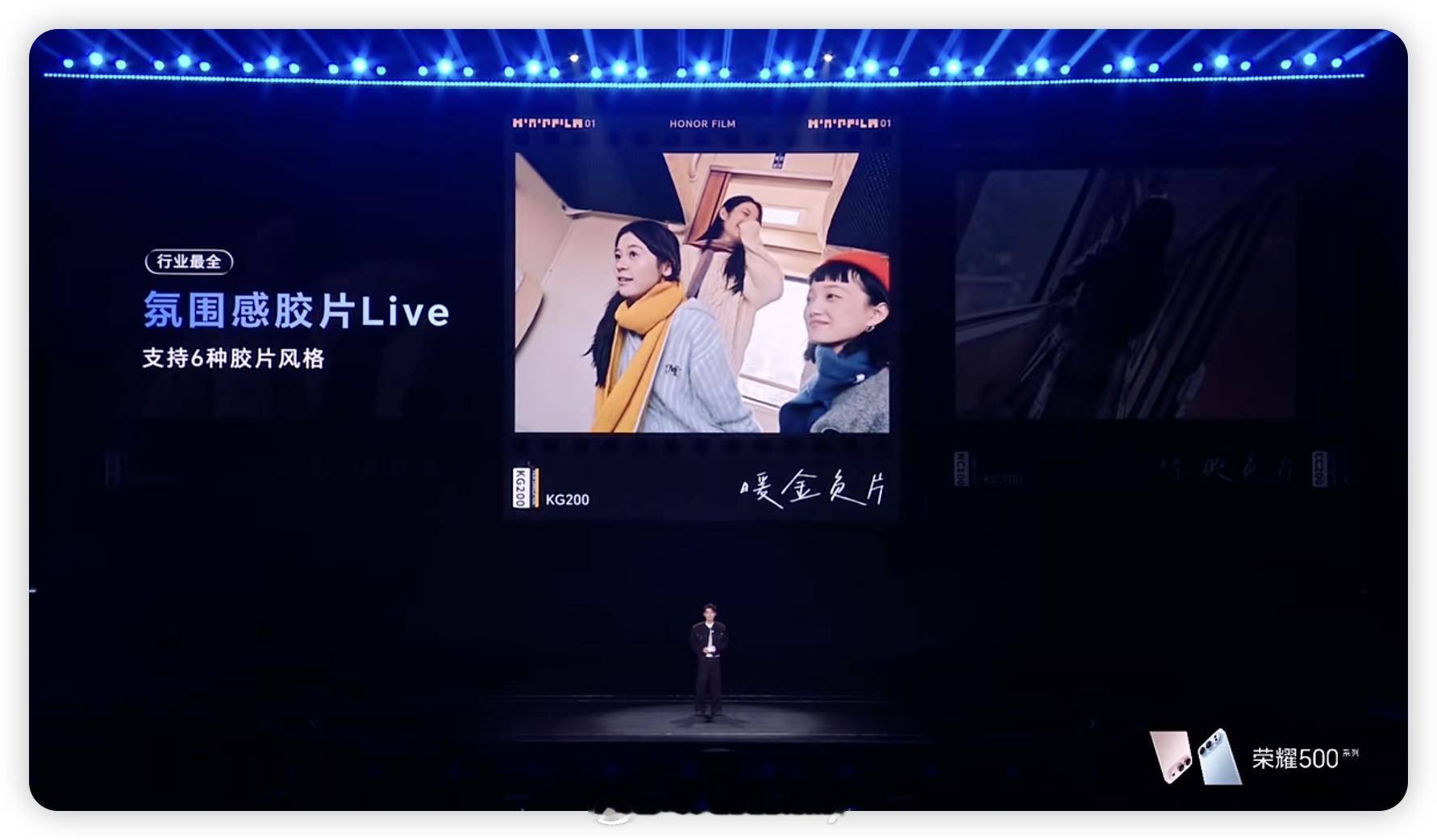 荣耀500系列,超出片!都是2亿,荣耀拍的更好,CIPA 5.0最强防抖,稳得住,拍得好。2亿人像全能实况,清晰有氛围,虚化、美颜全都有,质感常在!六种胶片氛围,4K超清Live实况,满满生命力,全是氛围感。而且还有破框而出,动态照片玩出花样,旅行大片就得这么拍。档位最全实况体验,行业唯一前后置Live人像美颜&虚化,拍动态照片还得是荣耀。