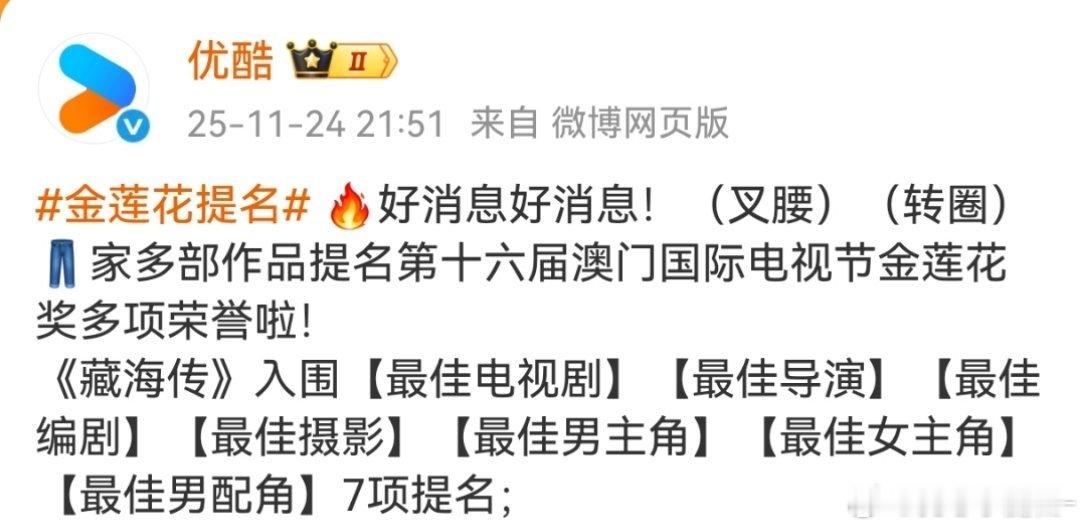 肖战《藏海传》获得 最佳电视剧、导演、编剧、男主角,女主角、男配、摄影奖,七项提名。但凡女配角里多点戏份都要全提了
