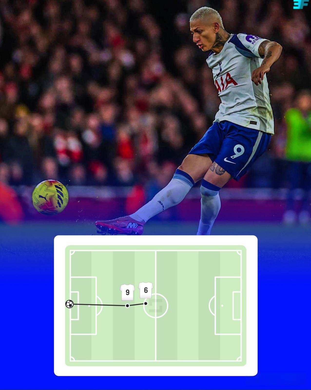 作为巴西国家队曾经的9号球员,理查利森极有特点:只进神仙球,其他普通进球一概不屑,奶奶能进的球他都不进[呲牙] 这不,昨晚面对阿森纳又进了一个超远距离射门,是#英超# 本赛季至今为止最远距离的射门,为热刺挽回一丝颜面[鼓掌]