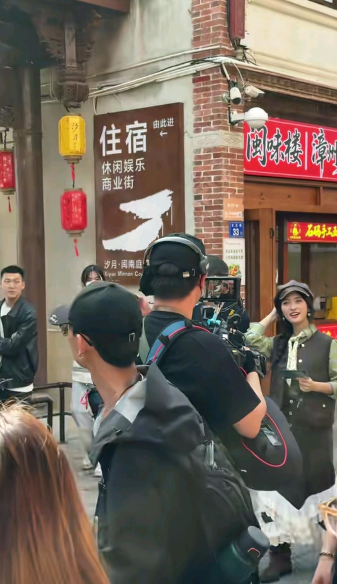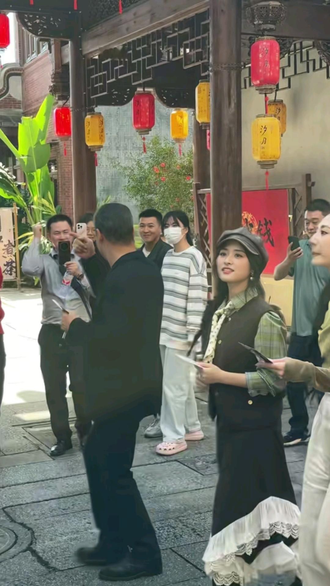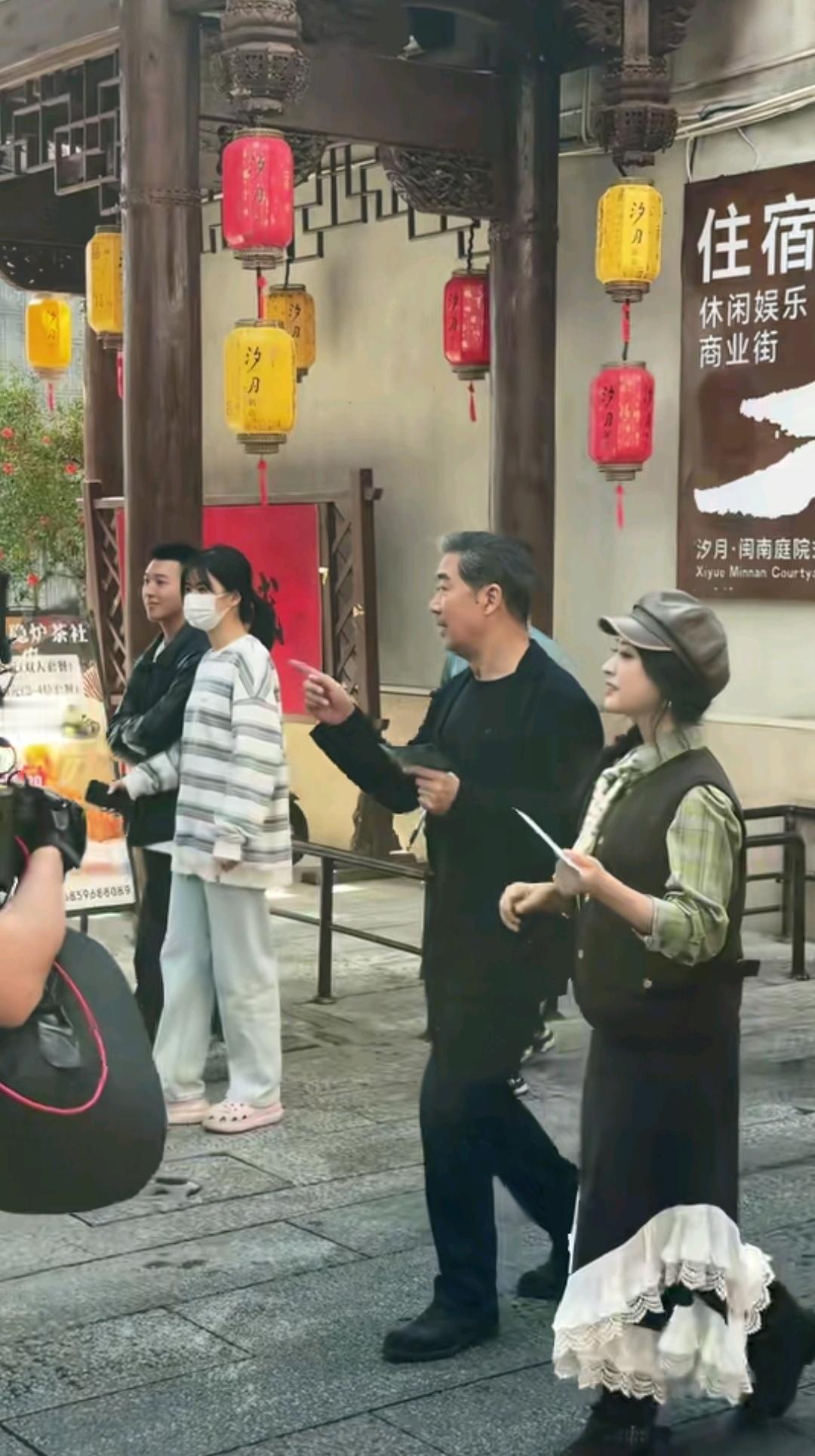 11月24日,张国立现身福建漳州古城,穿着一身黑色西装,体验漳州风情,漳州古街有各种可以体验的吃喝玩乐,张国立手上还拿着笔和小本子,很认真。 张国立身边还有一位穿着时髦的女士,她就是沈月,沈月穿着一身裙子,戴着棕色帽子,看起来很小家碧玉,好甜美。 张国立和沈月现身古城,是来录制节目的,两人配合着录制节目,吸引了不少人。