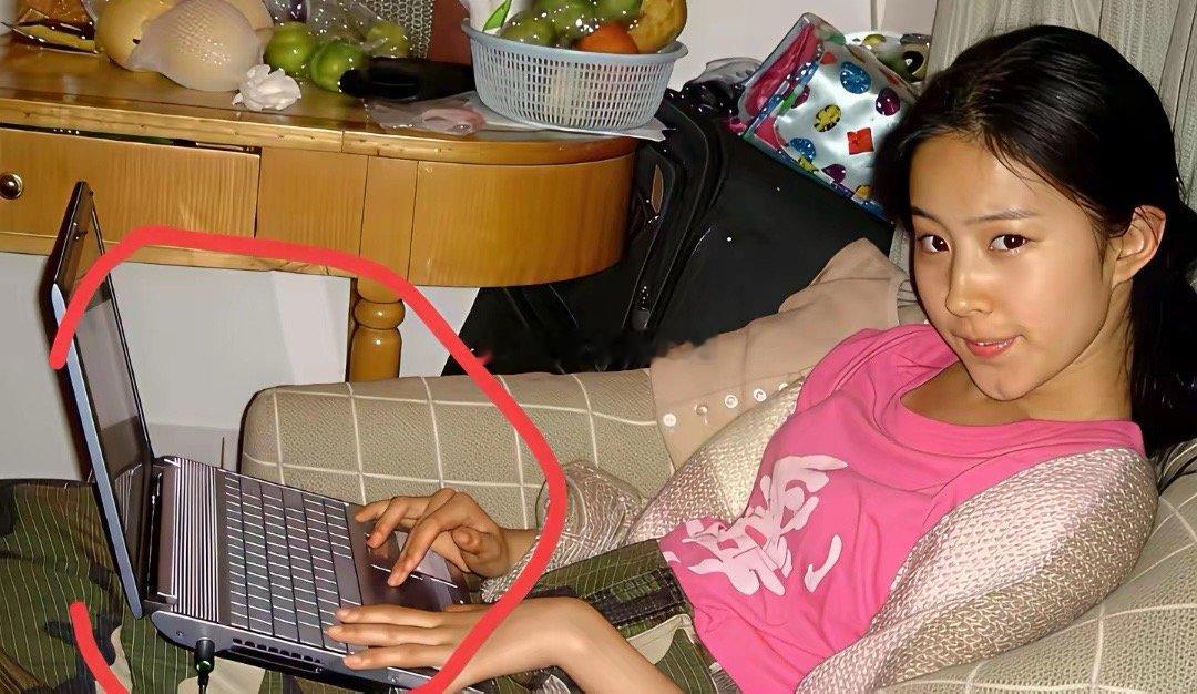这张照片拍摄于2002年,当年的刘亦菲只有15岁,大家能看出来她手里的这个电脑是什么品牌的吗?能猜出来的,绝对是一位高手。