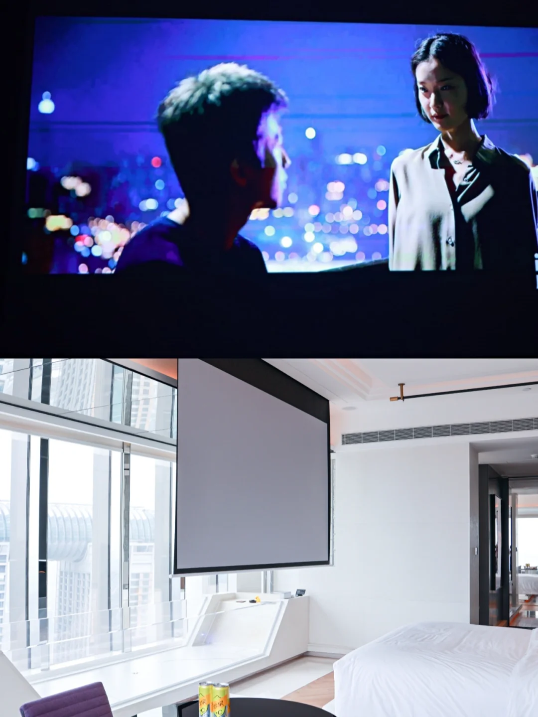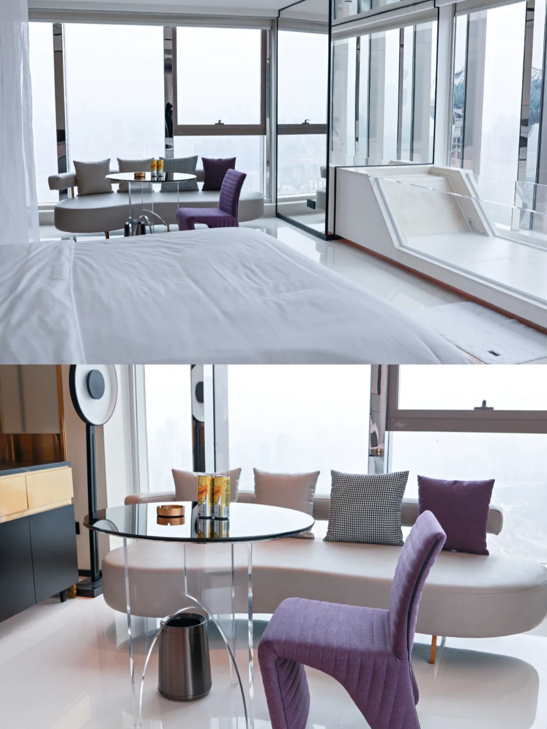 本次入住位于43层坐拥270度江景,超长玻璃浴缸,躺着就能看到重庆地标来福士的江景大床房。天气不好不想出门的时候,坐在浴缸里享受温水带来的放松与舒适,欣赏江畔夜景。放下投影重温拍摄于重庆的电影《从你的全世界路过》,旅游本就不必来去匆匆四处打卡,身心愉悦的旅途体验你会发现最美的风景已然就在身边。