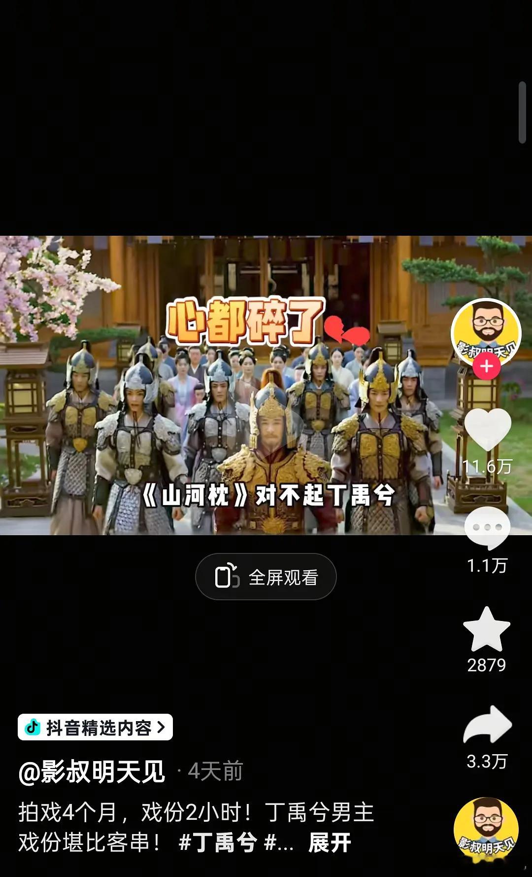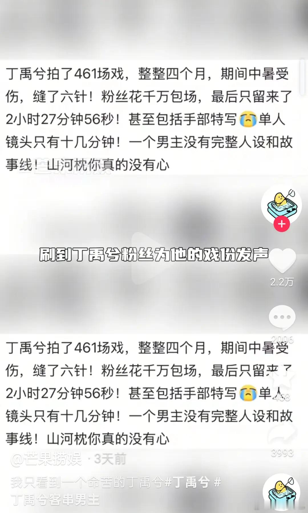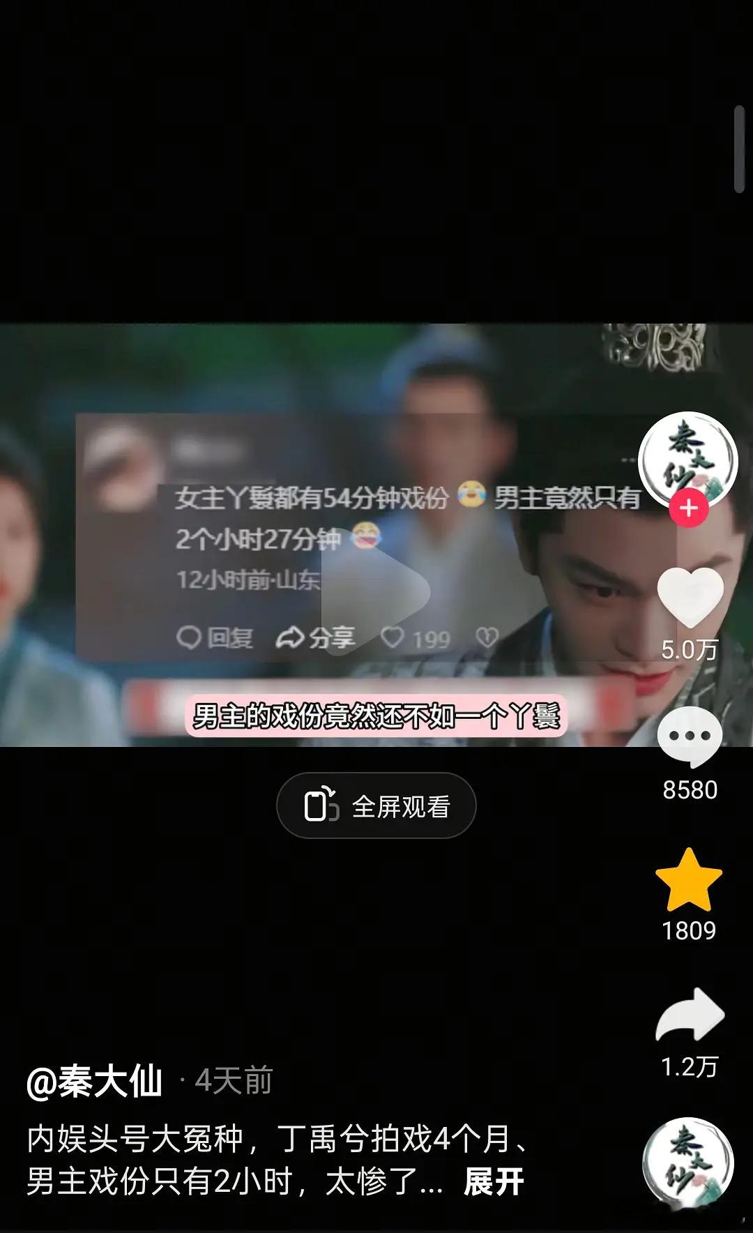 丁禹兮《山河枕》戏份太少,引网友众怒,已火到国外成为了新闻,全网都因男主角戏份太