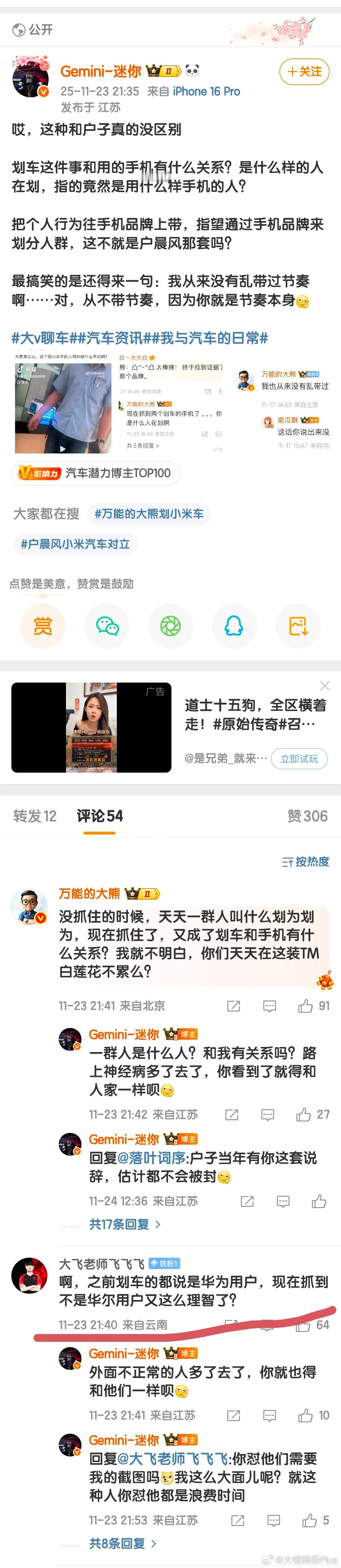 这位网友还是明白人:啊,之前划车的都说是华为用户,现在抓到不是华尔用户又这么理智了?